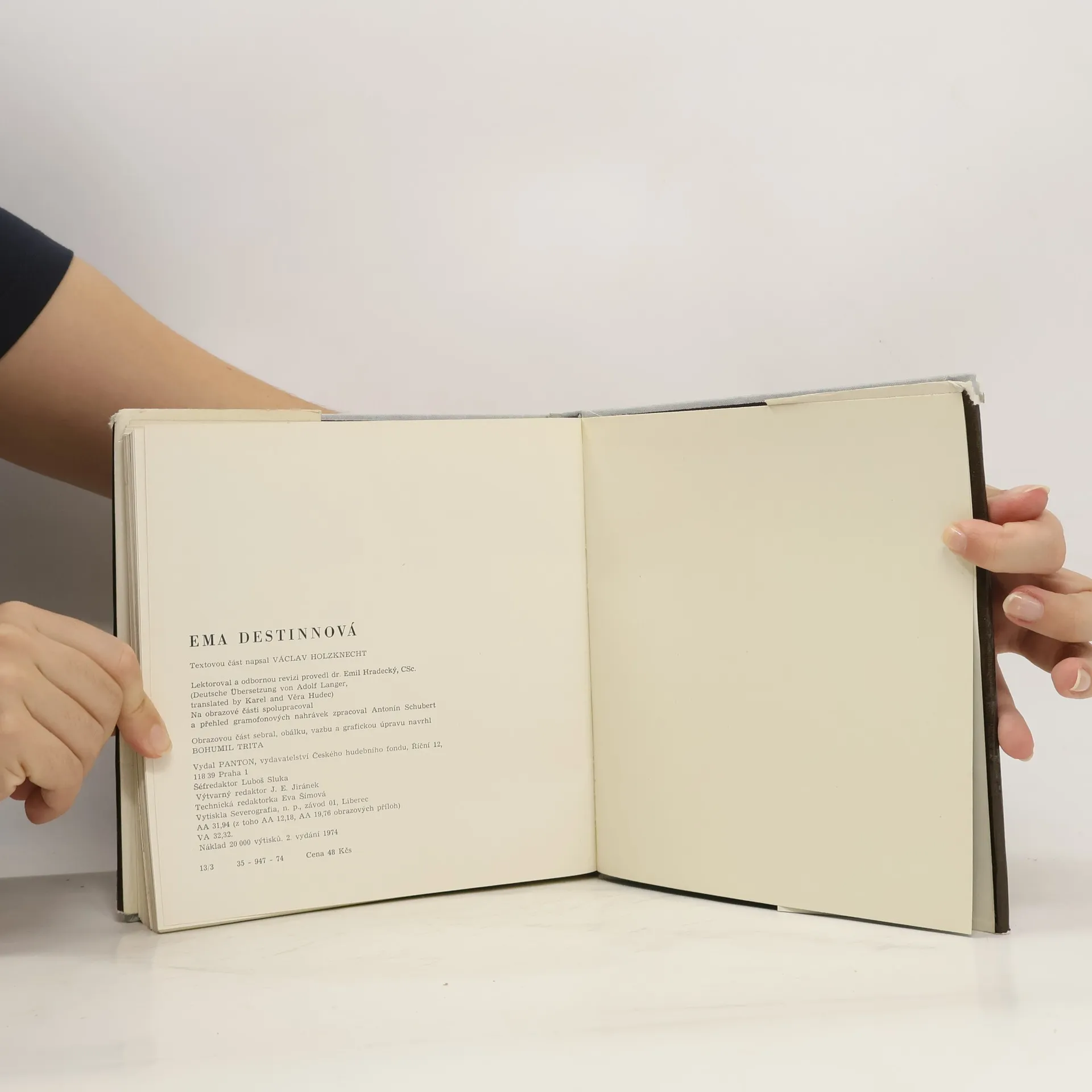 Ema Destinnová ve slovech i obrazech Životopis slavné umělkyně se odvíjí od jejího dětství a mládí, zachycuje její první nezdary a pak počátky budoucí kariéry, angažmá v Dvorní opeře v Berlíně, hostování ve Wagnerově divadle, turné po Evropě i Americe, celou její vrcholnou kariéruaž do posledních let jejího života, která prožila v ústraní na svém zámku Stráž. Publikace je bohatě vybavena snímky z jejího života i divadelních rolí.