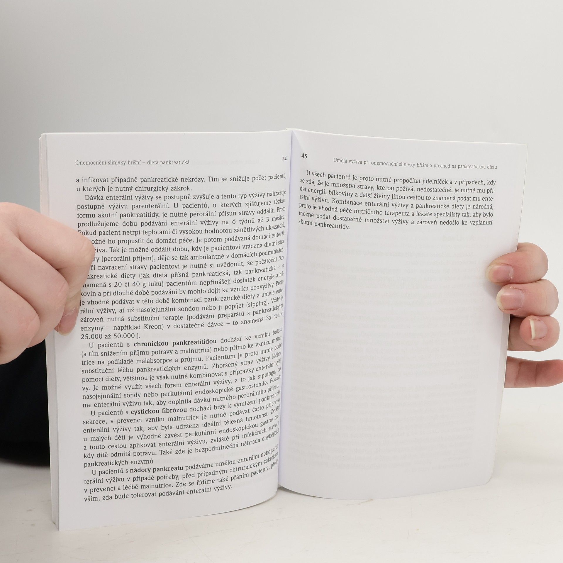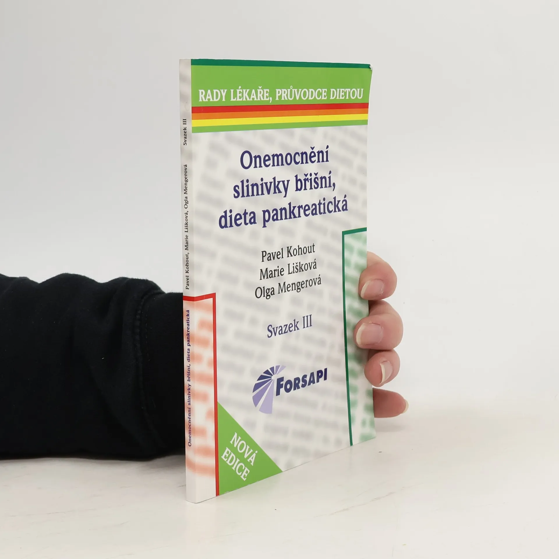 Další knížka nové edice pojednává o onemocněních slinivky břišní, především o diagnostice a léčbě jednotlivých chorob. Pacienti zde mohou najít návod k tomu, jak se vypořádat s dietními a režimovými opatřeními, informace o podstatě choroby a o možných diagnostických procedurách. Tím se stávají partnery lékařů, mohou lépe pochopit a plnit doporučení, která jsou potřebná pro lepší průběh léčení nemoci. Unikátní je pasáž o akutní pankreatitidě, navrácení běžné stravy, resp. pankreatické diety je oddáleno v případě, že onemocnění ještě není v klidové fázi. Podávání umělé výživy cestou tenké nasojejunální sondy v domácích podmínkách je opatřením, které se již provádí ve vybraných nemocnicích Evropy, ale i v České republice, umožní pacientům navrátit se dříve do domácího prostředí. Autoři doc MUDr Pavel Kohout a nutriční terapeutka Marie Lišková z Fakultní Thomayerovy nemocnice provádějí aktivně tento způsob léčby (kombinaci patřičné diety a umělé výživy) v praxi, nutriční terapeutka Olga Mengerová z IKEM přidala recepty pro jednotlivé fáze diety. Kniha je doplněna recepty pro jednotlivé fáze pankreatické diety a doporučením, na co má pacient klást největší důraz. Slovníček pojmů, který vysvětluje cizí výrazy, a rejstřík, který zlepšuje orientaci v knížce, umožní pacientům rychleji vstřebat potřebné informace.