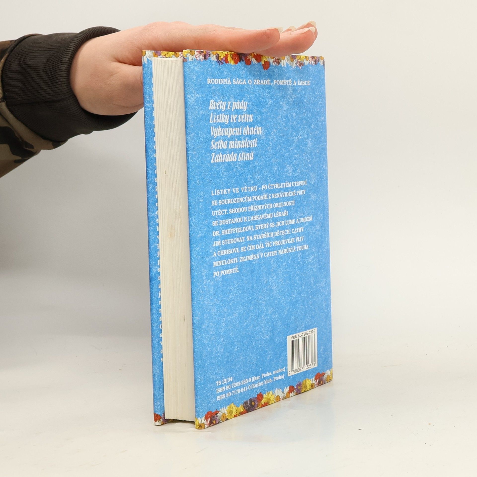 Pentalogie: Květy z půdy, Lístky ve větru, Vykoupení ohněm, Setba minulosti, Zahrada stínů. Po smrti otce zůstávají sourozenci Christopher, Cathy a dvojčata Cory a Carrie se svou matkou sami. Ta ovšem nemá peníze, a tak se rozhodne pro riskantní návrat k velmi bohatým rodičům, kteří ji ale vydědili. Děti zavře do podkrovního pokoje a s pomocí své zlé matky jim nosí potřebné věci k přežití. Dětem vlastně nic neschází, kromě čerstvého vzduchu, živých květin a pocitu volnosti. Na půdě, kam je přístup jen z onoho pokoje si vybudují papírovou "zahradu" kde si můžou pětiletá dvojčata hrát. Postihne je ale nejedno úskalí, největším problémem začíná být dospívání Christophera a Cathy, kteří se do sebe bezhlavě zamilují... 2. vydání