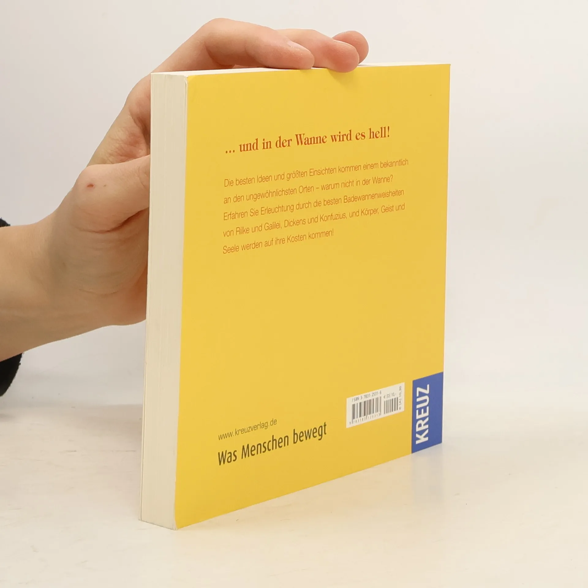 Die besten Ideen und größten Einsichten kommen einem bekanntlich an den ungewöhnlichsten Orten – warum nicht in der Wanne? Erfahren Sie Erleuchtung durch die besten Badewannenweisheiten von Rilke und Galielei, Dickens und Konfuzius, dann werden Körper, Geist und Seele auf ihre Kosten kommen!