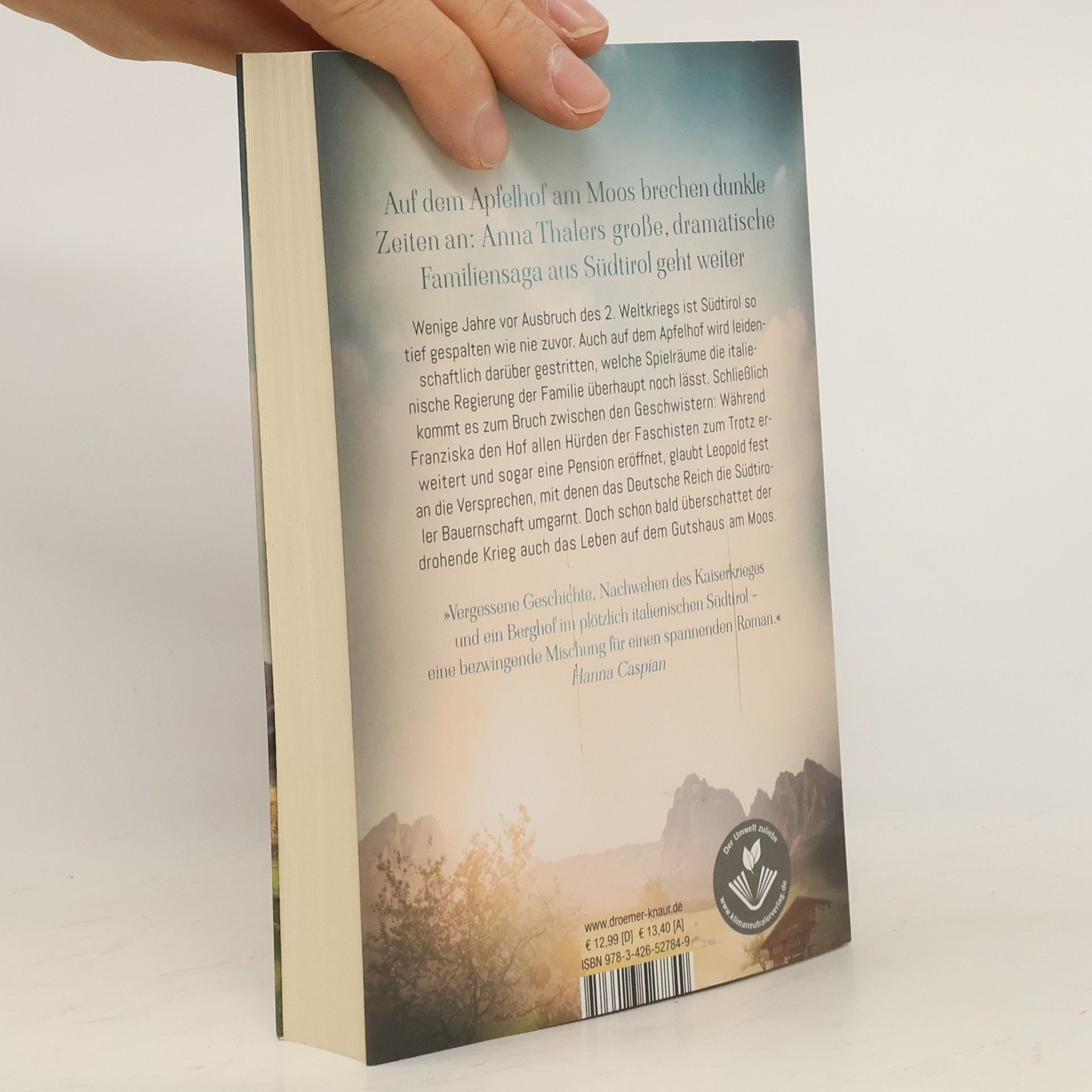 Wenn aus Geschwistern Gegner werden: Im 2. Teil der ergreifenden historischen Familiensaga aus Südtirol wirft der 2. Weltkrieg seinen Schatten voraus. Wenige Jahre vor Ausbruch des 2. Weltkriegs ist Südtirol so tief gespalten wie nie zuvor. Auch die Geschwister Franziska und Leopold streiten leidenschaftlich darüber, ob es besser wäre, in Italien zu bleiben oder ins Deutsche Reich auszuwandern. Schließlich kommt es zum Bruch: Während Franziska sich trotz aller Schwierigkeiten und des Drucks der italienischen Regierung dazu entscheidet, den Apfelhof in Südtirol weiterzuführen, verlässt Leopold Heimat und Familie und schließt sich den Faschisten an. Schon bald überschattet jedoch der drohende Krieg auch das Leben auf dem Apfelhof am Moos … Irgendwann möchte die Autorin Anna Thaler auf einer Eselfarm mit Blick auf die Dolomiten leben. Bis dahin entführt sie ihre Leser*innen in die atemraubende Landschaft Südtirols und lässt sie die wechselhafte Geschichte der Alpen-Region hautnah miterleben. Teil 1 ihrer historischen Familiensaga »Die Südtirol-Saga« ist unter dem Titel »Das Land, von dem wir träumen« erschienen.