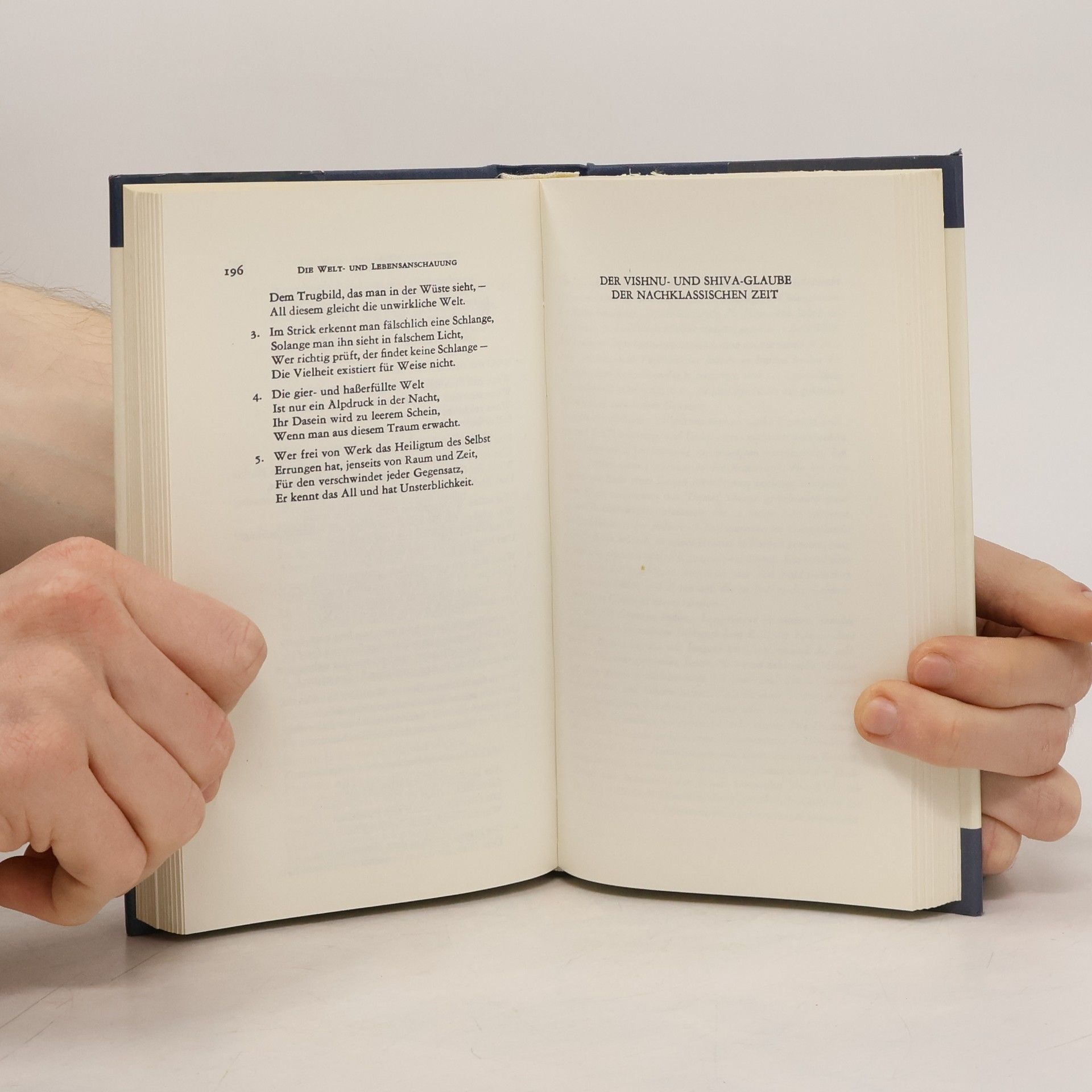 Der erste Band (334 Seiten) gibt ein vielseitiges Bild von der religiösen und philosophischen Vorstellungswelt des Hinduismus.Im zweiten Band (348 Seiten) werden die mannigfachen Aspekte altinidischen Lebens, so weit sie sich im literarischen Schaffen ausgewirkt haben, anhand von charakteristischen Proben aus dem indischen Schrifttum behandelt.Die erste Auflage erschien im Holle Verlag, Baden-Baden.
