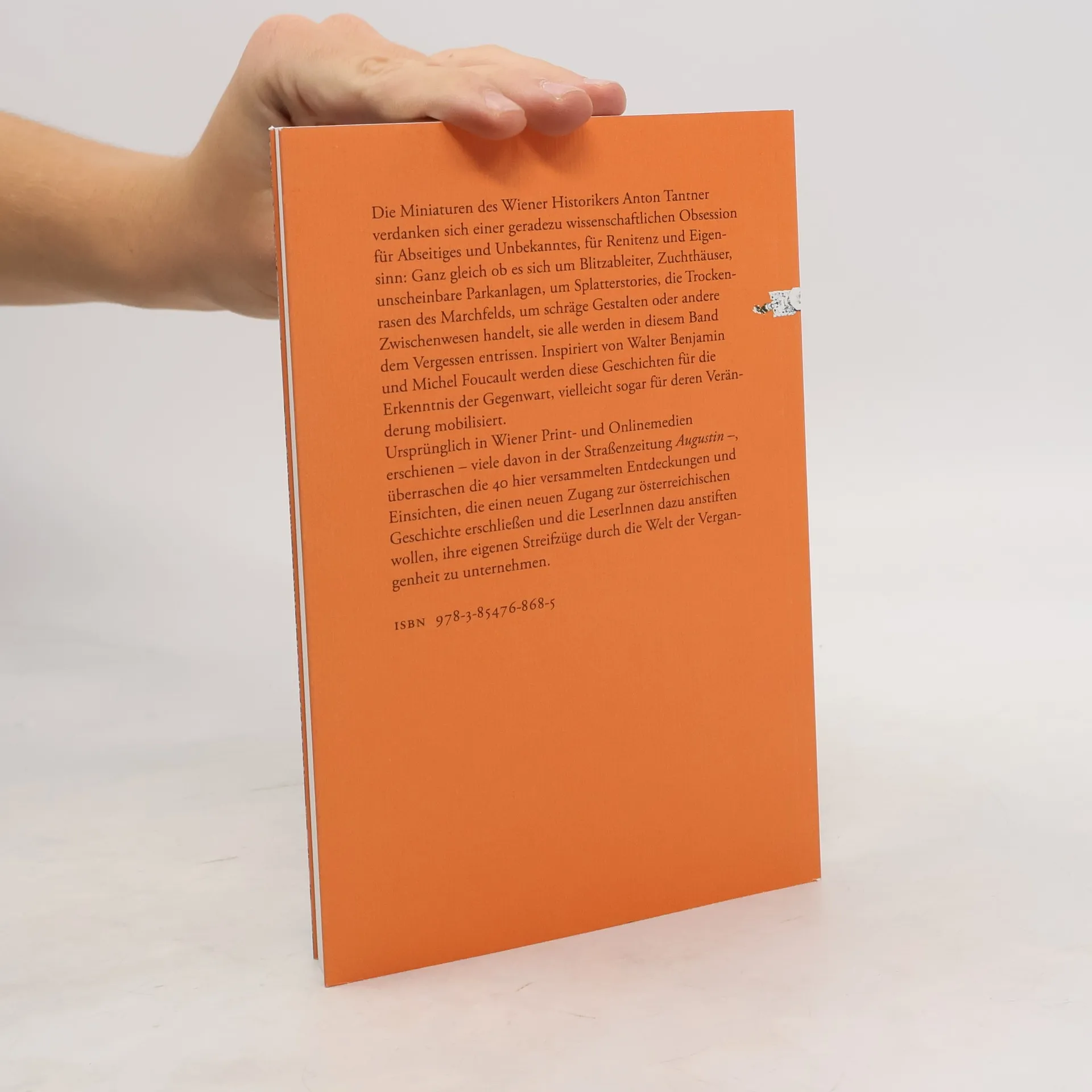 Die Miniaturen des Wiener Historikers Anton Tantner verdanken sich einer geradezu wissenschaftlichen Obsession für Abseitiges und Unbekanntes, für Renitenz und Eigensinn: Ganz gleich ob es sich um Blitzableiter, Zuchthäuser, unscheinbare Parkanlagen, um Splatterstories, die Trockenrasen des Marchfelds, um schräge Gestalten oder andere Zwischenwesen handelt, sie alle werden in diesem Band dem Vergessen entrissen. Inspiriert von Walter Benjamin und Michel Foucault werden diese Geschichten für die Erkenntnis der Gegenwart, vielleicht sogar für deren Veränderung mobilisiert. Ursprünglich in Wiener Print- und Onlinemedien erschienen – viele davon in der Straßenzeitung Augustin –, überraschen die 41 hier versammelten Entdeckungen und Einsichten, die einen neuen Zugang zur Wiener Geschichte erschließen und die LeserInnen dazu anstiften wollen, ihre eigenen Streifzüge durch die Welt der Vergangenheit zu unternehmen.