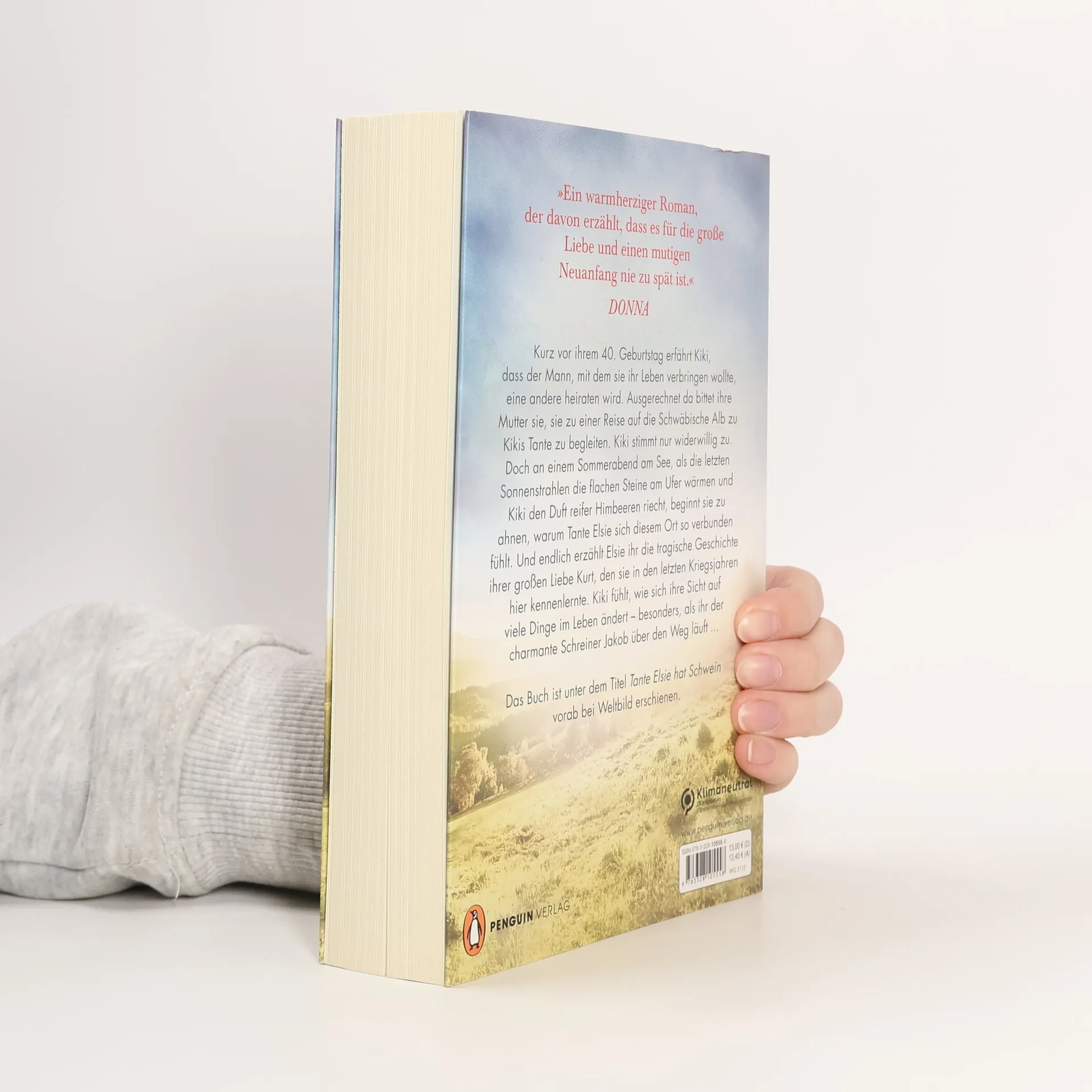 Drei Frauen, ein unvergesslicher Sommer und ein Ort, der Erinnerungen weckt Kurz vor ihrem 40. Geburtstag erfährt Kiki, dass der Mann, mit dem sie ihr Leben verbringen wollte, eine andere heiraten wird. Ausgerechnet da bittet ihre Mutter sie, sie zu einer Reise auf die Schwäbische Alb zu Kikis Tante zu begleiten. Kiki stimmt nur widerwillig zu. Doch an einem Sommerabend am See, als die letzten Sonnenstrahlen die flachen Steine am Ufer wärmen und Kiki den Duft reifer Himbeeren riecht, beginnt sie zu ahnen, warum Tante Elsie sich diesem Ort so verbunden fühlt. Und endlich erzählt Elsie ihr die tragische Geschichte ihrer großen Liebe Kurt, den sie in den letzten Kriegsjahren hier kennenlernte. Kiki fühlt, wie sich ihre Sicht auf viele Dinge im Leben ändert – besonders, als ihr der charmante Schreiner Jakob über den Weg läuft ... »Ein warmherziger Roman, der mit humorvoller Leichtigkeit und einer Prise Wehmut davon erzählt, dass es für die große Liebe und einen mutigen Neuanfang nie zu spät ist.« DONNA Das Buch ist unter dem Titel »Tante Elsie hat Schwein« bereits vorab bei Weltbild erschienen.