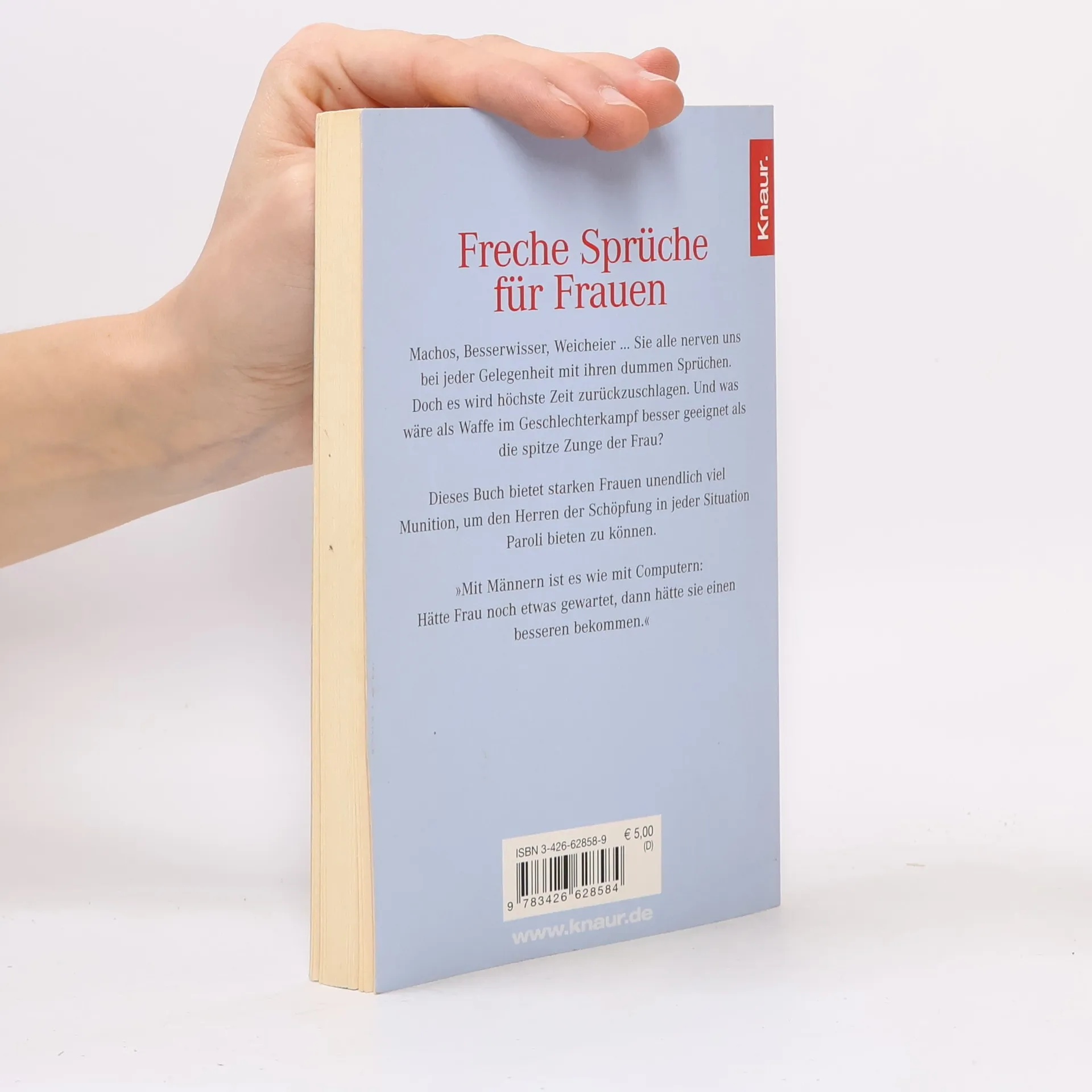 Machos, Besserwisser, Weicheier ? Sie alle nerven uns bei jeder Gelegenheit mit ihren dummen Sprüchen. Doch es wird höchste Zeit zurückzuschlagen. Und was wäre als Waffe im Geschlechterkampf besser geeignet als die spitze Zunge der Frau? Dieses Buch bietet starken Frauen unendlich viel Munition, um den Herren der Schöpfung in jeder Situation Paroli bieten zu können.