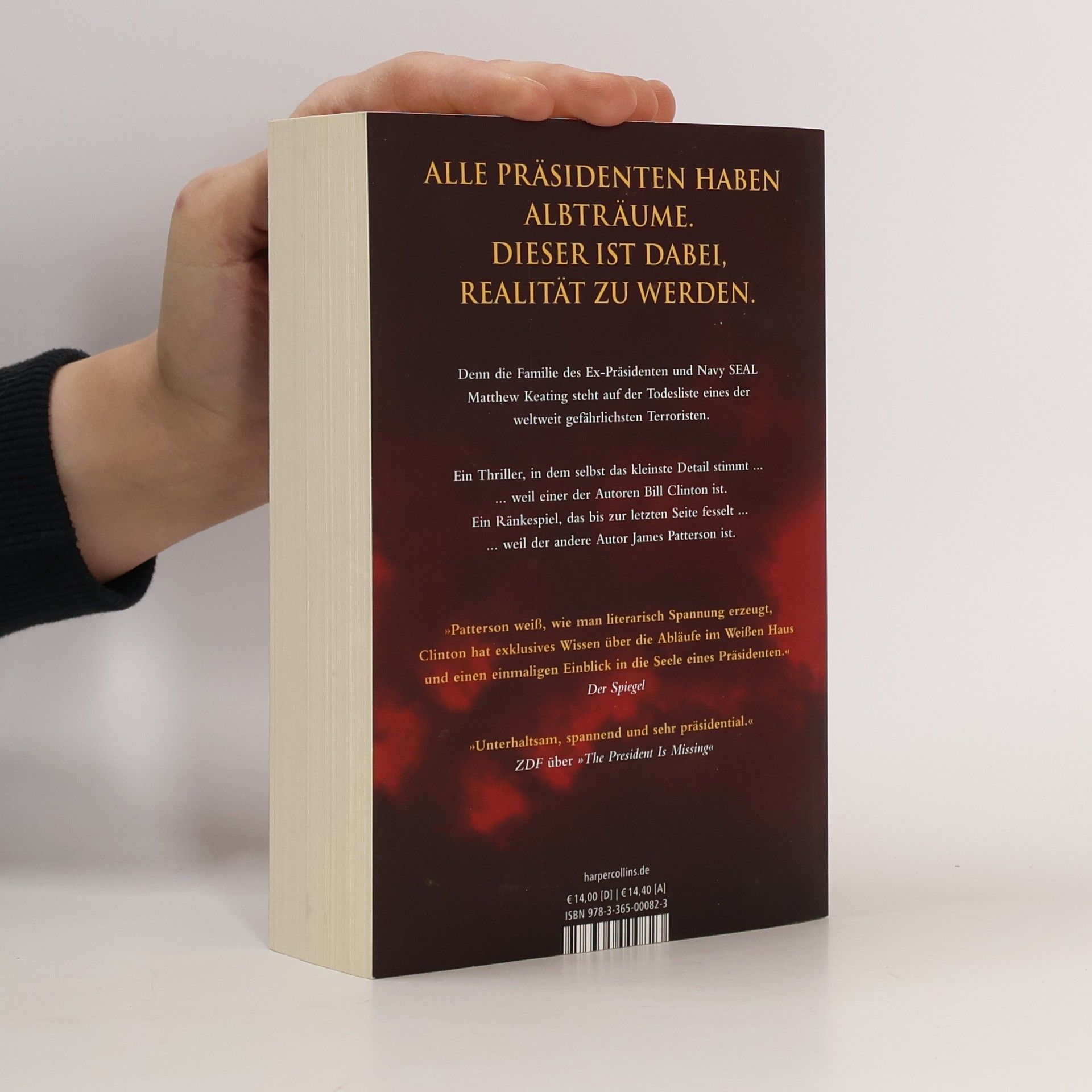 Die Familie des Ex-Präsidenten und Navy SEAL Matthew Keating steht auf der Todesliste eines gefährlichen Terroristen. Nach einer gescheiterten Militäraktion in Libyen, die seine zweite Amtszeit kostete, führt er mit seiner Frau und Tochter ein ruhiges Leben in New Hampshire. Doch als seine Tochter entführt wird, sind es nicht seine politischen Verbindungen, die ihm helfen, sondern sein hartes SEAL-Training. Kann er sie vor den Terroristen retten, bevor es zu spät ist? Bill Clinton äußert seine Dankbarkeit für die Zusammenarbeit mit James Patterson und hofft, dass die Leser das Buch ebenso genießen wie er das Schreiben. Die Pressestimmen loben die spannende Erzählweise und Clintons einzigartige Einsichten in das Weiße Haus und das Leben eines Präsidenten. Der Spiegel hebt hervor, dass Patterson literarische Spannung erzeugt, während die New York Times den Roman als großartig bezeichnet. DPA beschreibt ihn als politischen Thriller erster Güte, und Deutschlandfunk Kultur betont den patriotischen Charakter. ZDF nennt ihn unterhaltsam und spannend, während die Sunday Times den tadellosen Plot und präzisen Stil lobt. Johannes Baumstuhl von Galore hebt die gründliche Konstruktion des Thrillers hervor, der die Erfahrung eines der meistgelesenen Autoren widerspiegelt. Lebensart Kiel vergibt fünf von fünf Sternen, und OÖ Nachrichten empfiehlt ihn für Fans von Hollywood-Action.