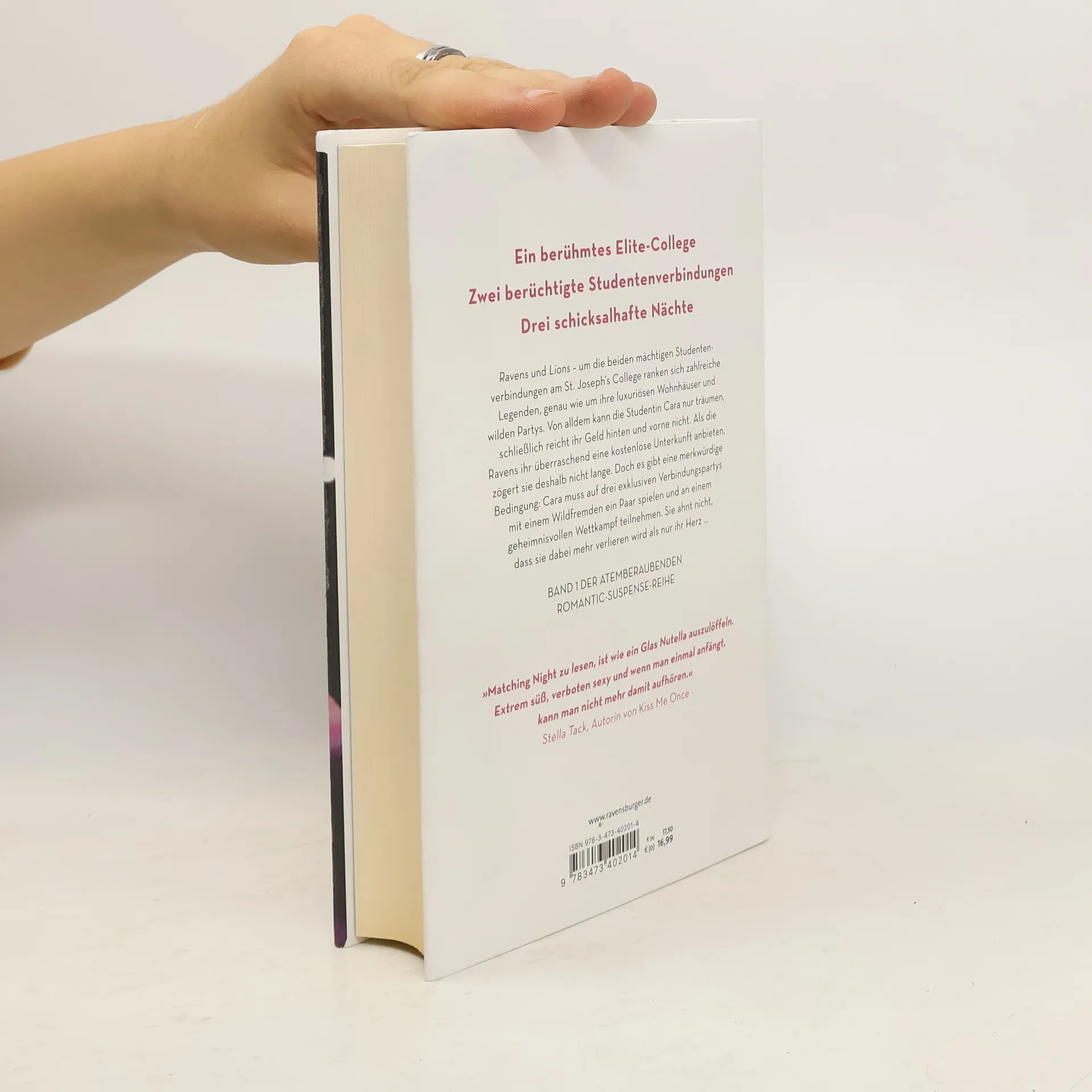 Ein berühmtes Elite-College, zwei berüchtigte Studentenverbindungen und drei Nächte, die über dein Schicksal entscheiden. Am St. Joseph‘s College ranken sich zahlreiche Legenden um die Ravens und Lions, ihre luxuriösen Wohnhäuser und wilden Partys. Die Studentin Cara träumt von diesem Leben, doch ihr Geld reicht nicht. Als die Ravens ihr überraschend eine kostenlose Unterkunft anbieten, zögert sie nicht lange. Doch eine merkwürdige Bedingung erwartet sie: Cara muss auf drei exklusiven Verbindungspartys mit einem Wildfremden ein Paar spielen und an einem geheimen Wettkampf teilnehmen. Sie ahnt nicht, dass sie dabei mehr verlieren wird als nur ihr Herz. Knisternd, glamourös und gefährlich – der Auftakt der Dark-Academia-Reihe von Stefanie Hasse. ***Leseprobe*** Die Zeit bleibt stehen, während unzählige Augenpaare auf uns gerichtet sind. Ich will mich instinktiv von diesem Überfall zurückziehen, meine Handflächen pressen gegen seine Brust und spüre das hämmernde Herz unter dem weichen Stoff seines Hemds. Es schlägt im selben rasenden Takt wie meins, nervös, verängstigt und berauscht. Ehe ich mich versehe, erwidere ich den Kuss, kralle mich an seinem Hemd fest und ziehe ihn näher. Der Kuss vertieft sich, ich nehme den rauchigen Geschmack seines Whiskeys wahr, als seine Zunge auf meine trifft. Niemand unterbricht uns.