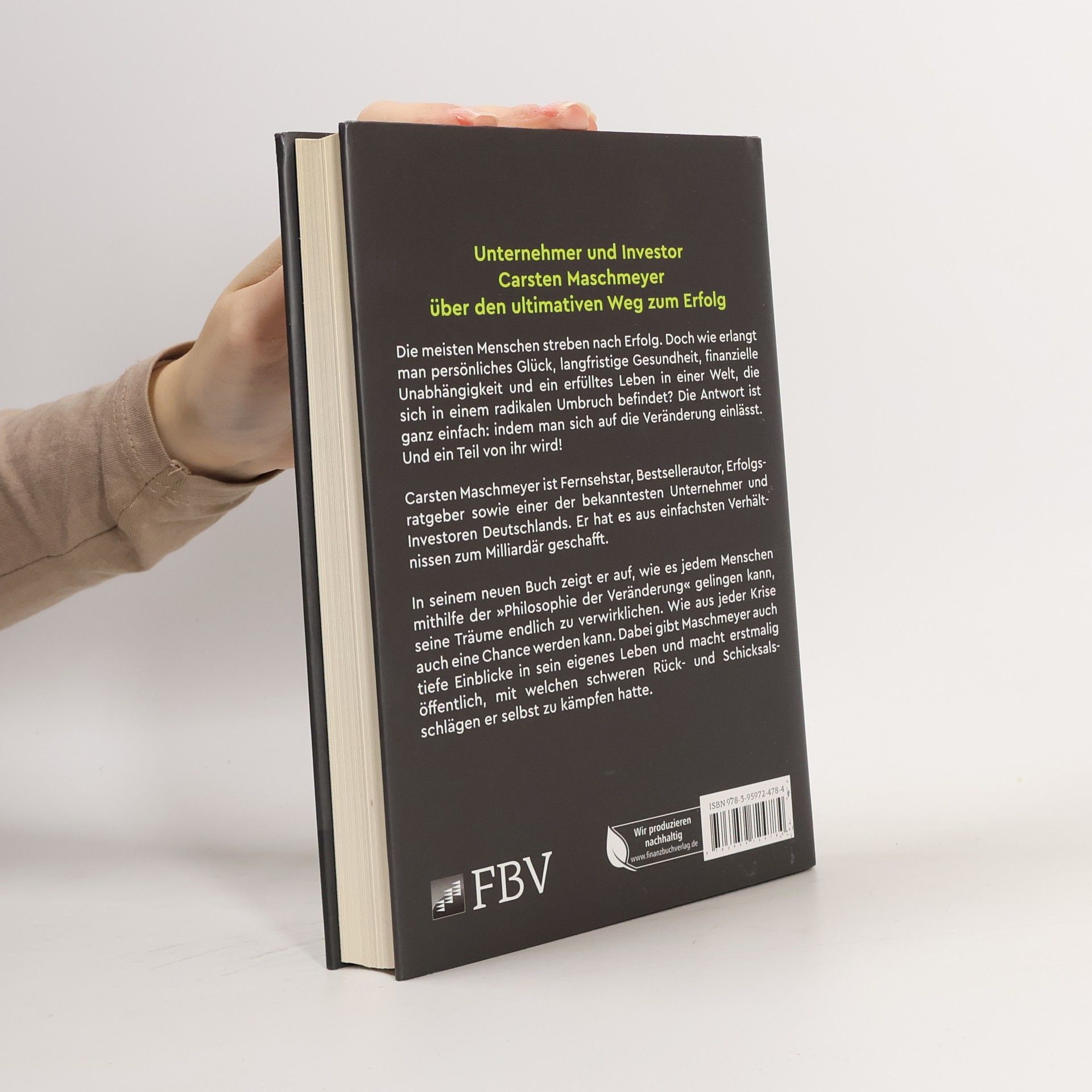 Höhle-der-Löwen-Star Carsten Maschmeyer über den ultimativen Weg zum Erfolg Die meisten Menschen streben nach Erfolg. Doch wie erlangt man persönliches Glück, energievolle Gesundheit, finanzielle Unabhängigkeit und ein erfülltes Leben in einer Welt, die sich in einem radikalen Umbruch befindet? Die Antwort ist ganz einfach: indem man sich auf die Veränderung einlässt. Und ein Teil von ihr wird! Carsten Maschmeyer ist Fernsehstar, Bestsellerautor, Erfolgsratgeber sowie einer der bekanntesten Unternehmer und Investoren Deutschlands. Er hat es aus einfachsten Verhältnissen zum Milliardär geschafft. In seinem neuen Buch zeigt er auf, wie es jedem Menschen mithilfe der »Philosophie der Veränderung« gelingen kann, seine Träume endlich zu verwirklichen. Wie aus jeder Krise auch eine Chance werden kann. Dabei gibt Maschmeyer auch tiefe Einblicke in sein eigenes Leben und macht erstmalig öffentlich, mit welchen schweren Rück- und Schicksalsschlägen er selbst zu kämpfen hatte. Er zeigt auf, wie jeder alles ändern kann.