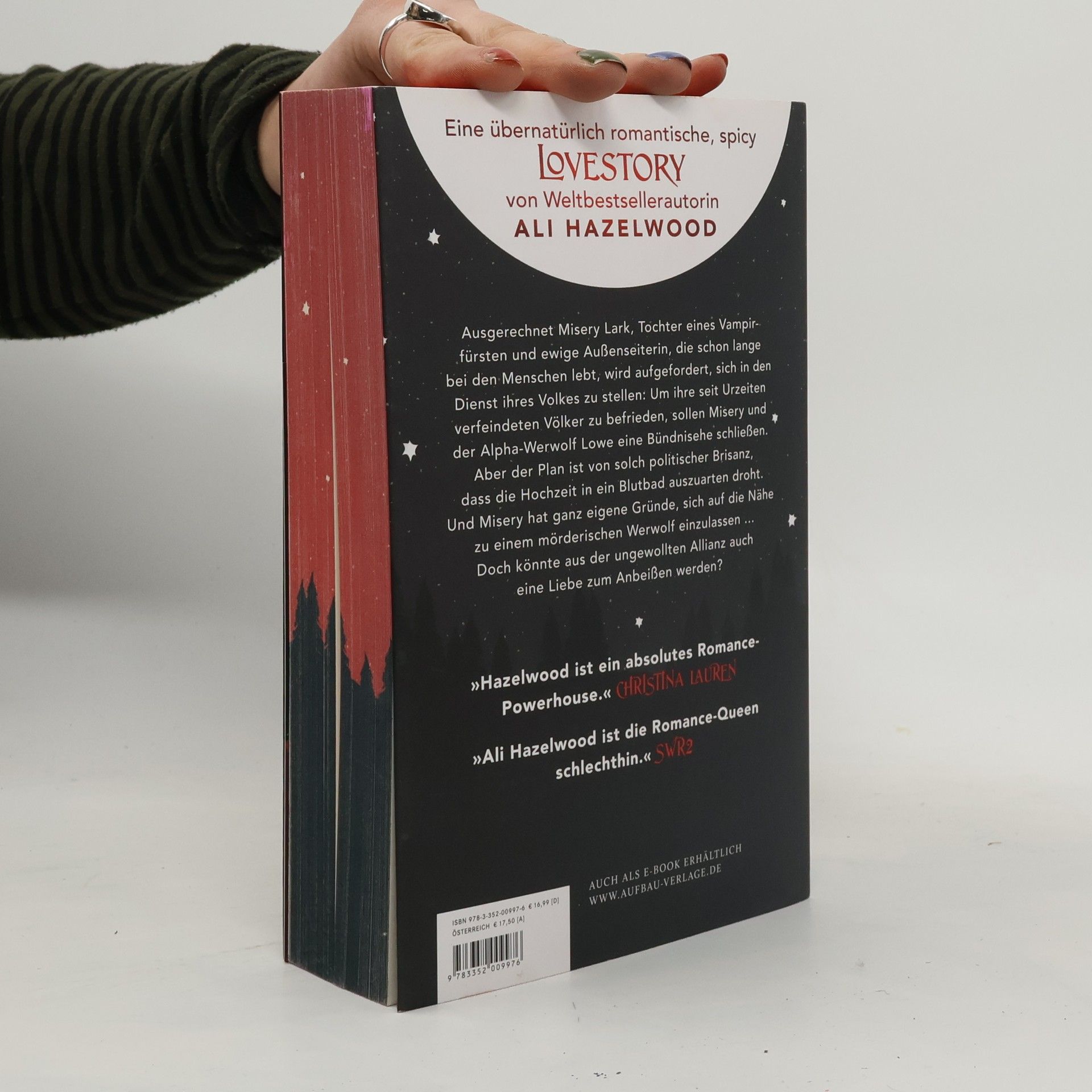Mit wunderschönem farbigem Buchschnitt – limitiert auf die erste Auflage. Misery Lark, Tochter eines mächtigen Vampirfürsten, ist eine Außenseiterin, die unter den Menschen ein anonymes Dasein führt. Plötzlich soll sie sich jedoch einer brisanten Bündnisehe mit einem Werwolf, dem ewigen Feind der Vampire, hingeben. Ihr zukünftiger Ehemann, der Alpha Lowe Moreland, ist ebenso erbarmungslos wie unberechenbar, regiert jedoch mit Autorität und einem Sinn für Gerechtigkeit, was ihn von den Vampiren unterscheidet. Misery spürt, dass er ihr nicht traut – und das aus gutem Grund, denn sie hat eigene Motive für das Bündnis und ist bereit, alles zu opfern, selbst ein Leben unter Wölfen. Doch sie hat nicht mit der überwältigenden Kraft der Liebe gerechnet, die alle Unterschiede überwindet. Der neue Bestseller von Ali Hazelwood erzählt von einer Liebe zwischen zwei Welten: Forbidden Love, Fated Mates, Enemies to Lovers und mehr in einer übernatürlich romantischen, prickelnd heißen Lovestory aus einem neuen Teil des Aliversums. »Hazelwood ist ein absolutes Romance-Powerhouse.« – Christina Lauren. »Leidenschaftlich und witzig – Ali Hazelwoods Debüt im Paranormalen führt uns in eine faszinierende Welt.« – Nalini Singh, New-York-Times-Bestsellerautorin.