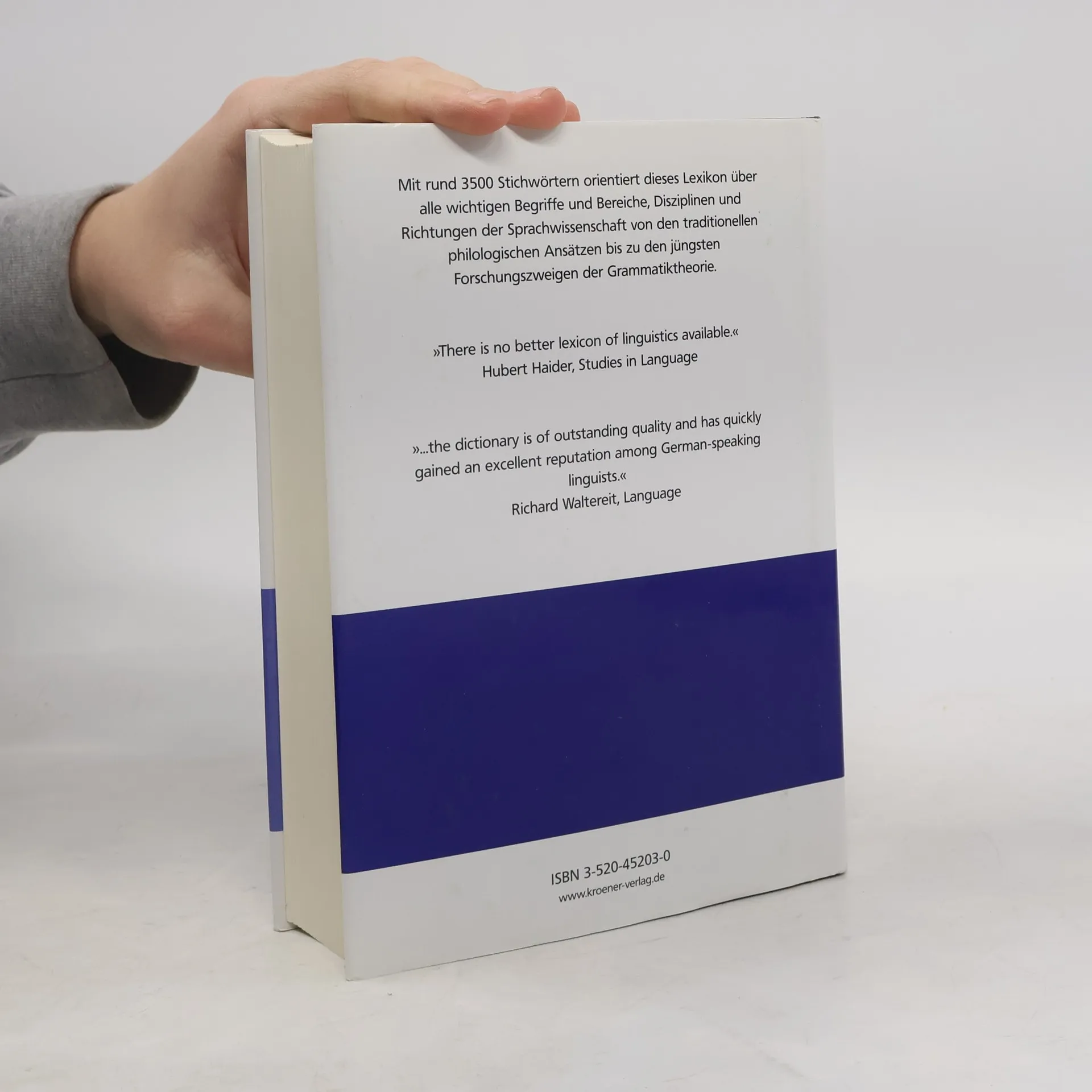 Längst ein Standardwerk, liegt Hadumod Bußmanns Lexikon der Sprachwissenschaft nun in 4. Auflage vor: Klar strukturierte, gut verständliche Artikel orientieren über die wichtigsten Begriffe und Bereiche, Disziplinen und Richtungen der Sprachwissenschaft – von den traditionellen philologischen Ansätzen bis zu den jüngsten Forschungszweigen der Grammatiktheorie. Dabei werden auch (Nachbar-)Disziplinen wie Neurolinguistik, Psycholinguistik und Soziolinguistik, Rhetorik, Stilistik, Logik und Sprachphilosophie berücksichtigt sowie die wesentlichen Merkmale von rund 250 Sprachen und Sprachfamilien dargestellt. Ein sorgfältig durchdachtes Netz von Querverweisen führt rasch zur gesuchten Information in größeren Zusammenhängen; ausführliche, sachlich gegliederte Bibliographien weisen den Weg zu vertiefender Lektüre und wissenschaftlicher Beschäftigung. Inzwischen liegt das Handbuch auch in englischer, chinesischer und italienischer Bearbeitung vor. Für die 4., überarbeitete Auflage wurden die Texte gründlich durchgesehen und die Bibliographien durch neuere Forschungsliteratur aktualisiert.