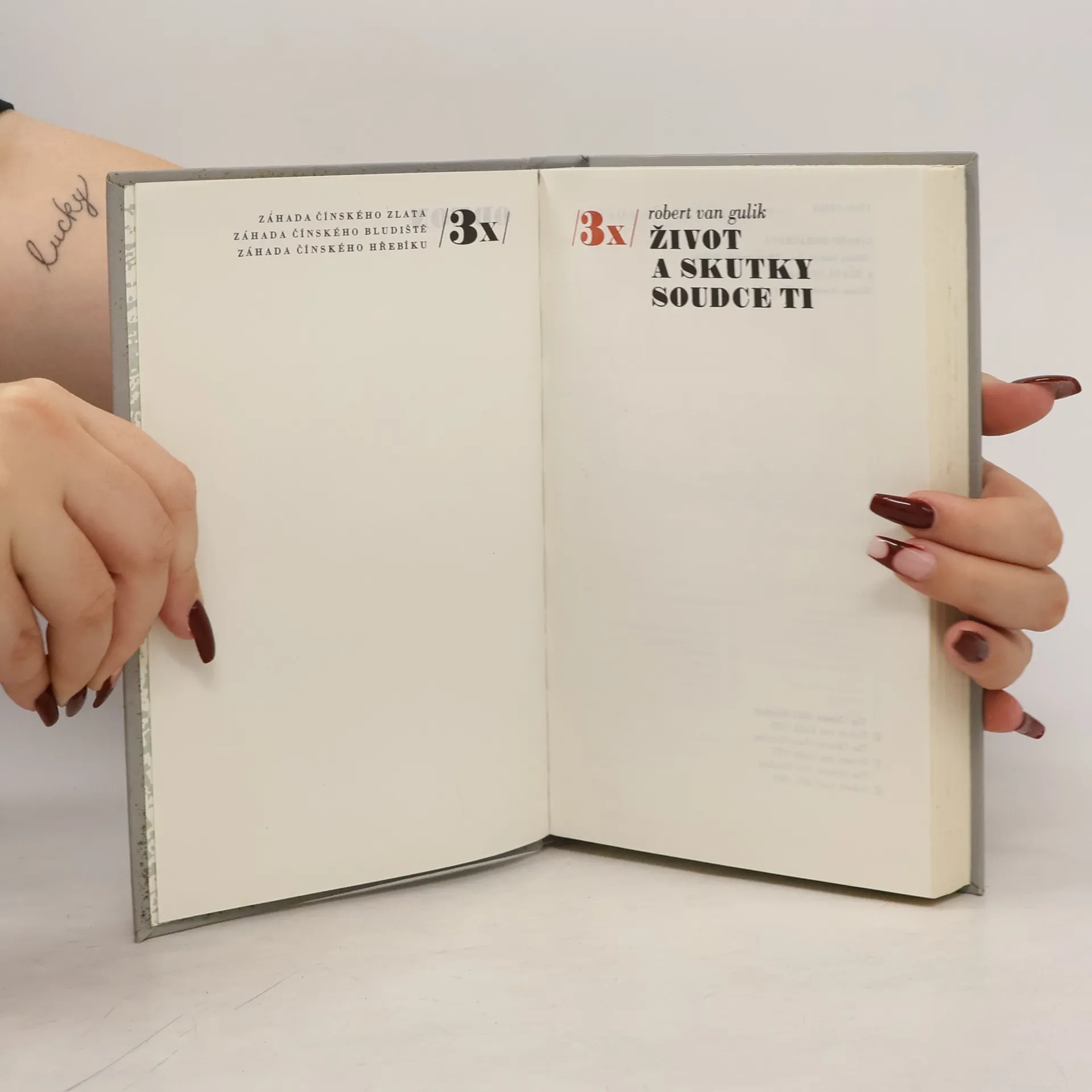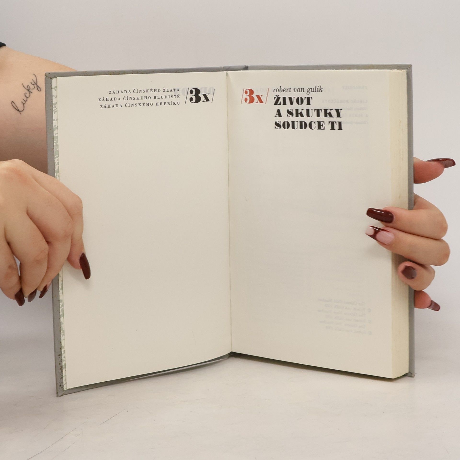 Tři detektivní příběhy (Záhada čínského zlata, Záhada čínského bludiště, Záhada čínského hřebíku) umožňují čtenáři sledovat životopis soudce Ti a jeho logické řešení obtížných a záhadných případů.