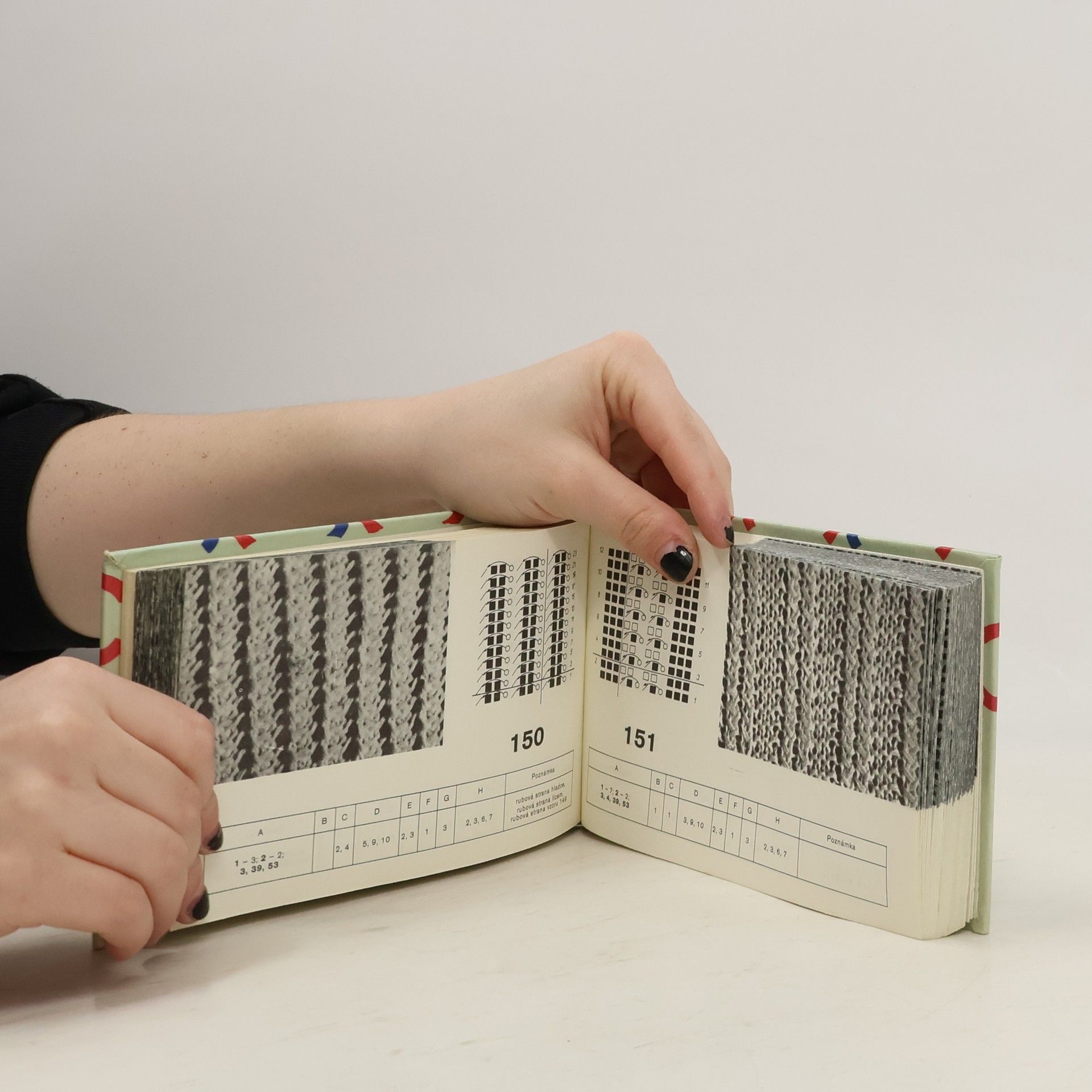 Šestá kniha sbírky vzorů pro ruční pletení. Obsahuje 300 vzorů pletených různými technikami. Každý vzor je znázorněn černobílou fotografií, vysvětlen pérovou kresbou a doplněn tabulkou s různými údaji, jako počet ok, řad, označení vzhodné příze, použití pro určitý pletený výrobek, charakteristika vzoru a způsobu žehlení hotového výrobku.