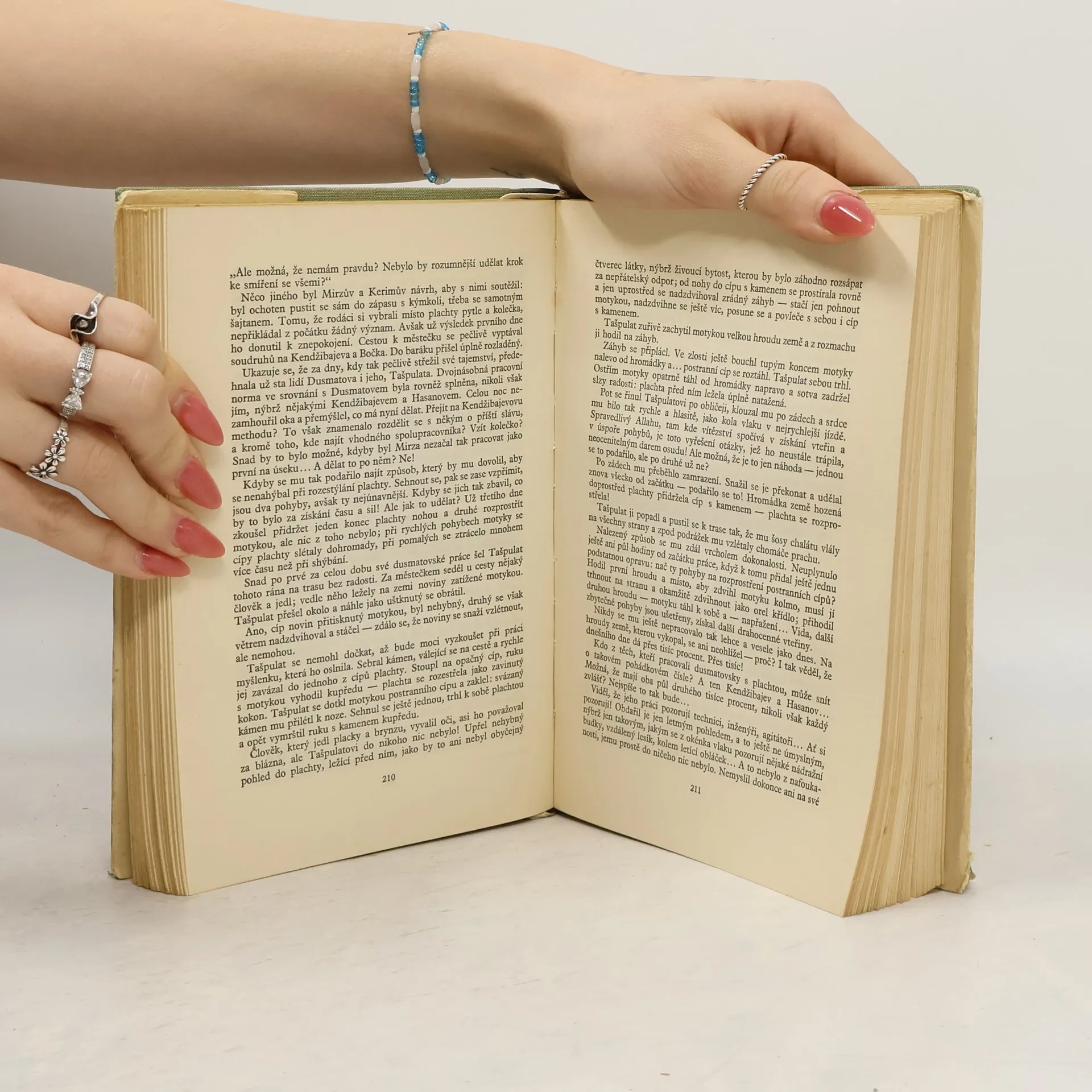 Hlavním motivem rozsáhlé románové skladby autora - laureáta Stalinovy ceny - je stavba Velkého ferganského průplavu, kterým byly v r. 1939 v sovět. Uzbekistanu spojeny řeky Naryn a Kara-Darja. Na procesu politického uvědomování obyvatelů jednoho z nejzaostalejších uzbeckých kolchozů, kde nízkou životní úroveň způsobovala nejen neúrodná půda bez možnosti zavlažování, ale především náboženský fanatismus a bezmezná věrnost starým obyčejům, je zachycena nesmírně zodpovědná úloha stranických funkcionářů, kteří přesvědčovali obyvatele, že rozkvět a bohatství kolchozu je spojeno s odstraněním všeho potupného, co zdědili z dob emirátu. Druhým hlavním motivem románu je ženská otázka - odstranění ponižujícího postavení uzbecké ženy, které předsudky zakazovaly účastnit se mužovy veřejné činnosti. V průběhu děje, jemuž nechybí dramatičnost i líčení zvláštností pamirské přírody, řeší autor všechny podstatné otázky, spojené s vnitřním i vnějším přerodem lidí, počínajících žít podle Stalinské ústavy.