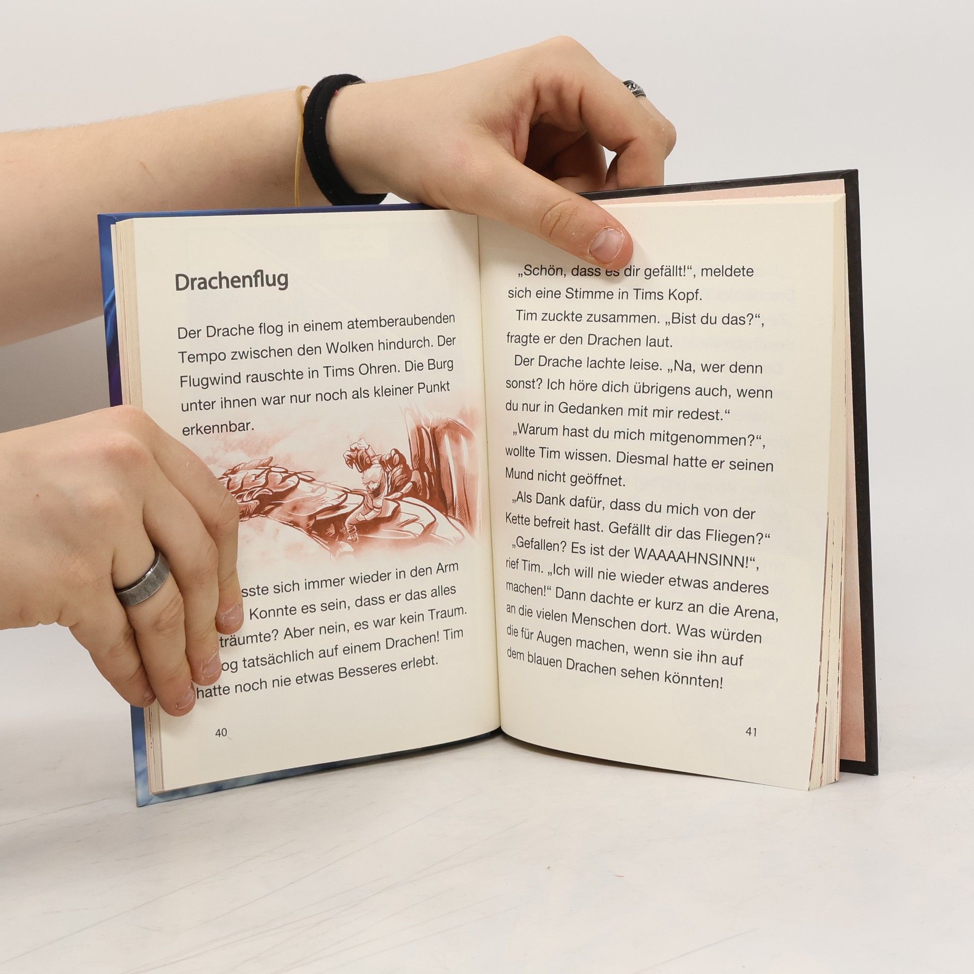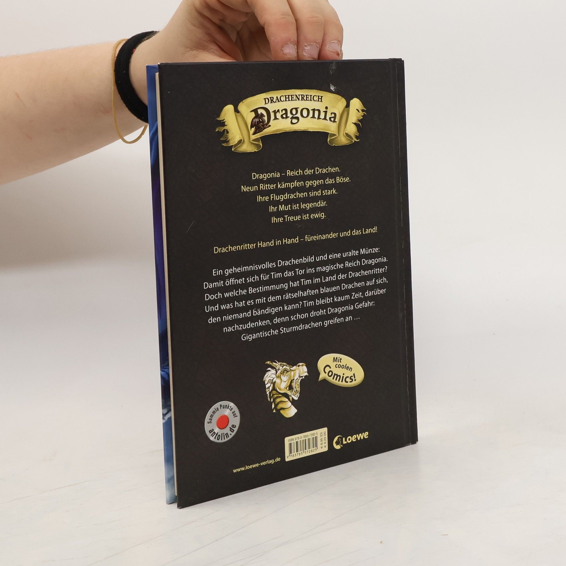 Dragonia – Reich der Drachen. Neun Ritter kämpfen gegen das Böse. Ihre Flugdrachen sind stark. Ihr Mut ist legendär. Ihre Treue ist ewig. Drachenritter Hand in Hand – füreinander und das Land! Ein geheimnisvolles Drachenbild und eine uralte Münze: Damit öffnet sich für Tim das Tor ins magische Reich Dragonia. Doch welche Bestimmung hat Tim im Land der Drachenritter? Und was hat es mit dem rätselhaften blauen Drachen auf sich, den niemand bändigen kann? Tim bleibt kaum Zeit, darüber nachzudenken, denn schon droht Dragonia Gefahr: Gigantische Sturmdrachen greifen an ...