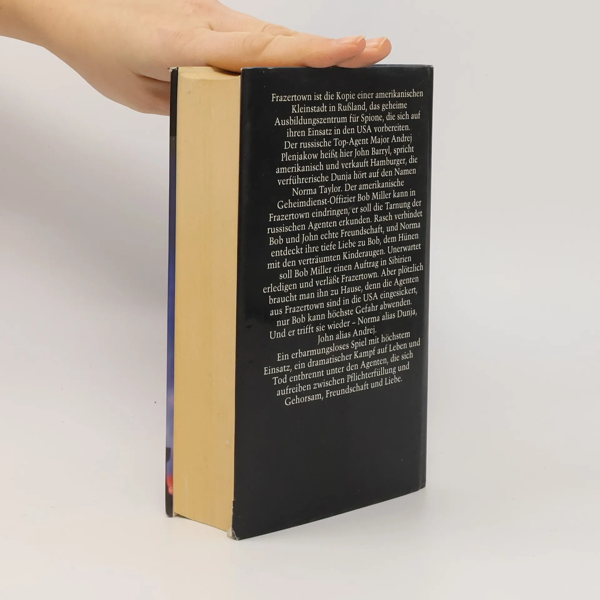 Frazertown - eine »amerikanische« Stadt in der UdSSR. Smolanska - eine »sowjetische« Stadt in den USA. In ihnen Menschen, die zu Robotern des Gehorsams gedrillt werden. Im Spiel der Geheimdienste hin- und hergeschoben wie Schachfiguren. Doch was geschieht, wenn sich diese Menschen ihres Menschseins bewußt werden? Der sowjetische Major Plenjakow glaubt zu träumen, als er nach Frazertown abkommandiert wird. Frazertown ist eine amerikanische Modellstadt mitten in der Ukraine, das streng bewachte Ausbildungszentrum für sowjetische Spione, die später in den USA eingesetzt werden. Um die gleiche Zeit bringt ein geheimnisvolles Fischerboot den amerikanischen Major Bob Miller vom türkischen Asmara zur russischen Schwarzmeerküste. Major Miller, der für einen Einsatz in der UdSSR in Smolenska, einer »sowjetischen« Stadt in den USA ausgebildet worden ist, gilt als einer der fähigsten amerikanischen Geheimndienst-Offiziere. Beide werden Freunde - bis die Liebe zu einer schönen Frau sie zu Rivalen macht ... In diesem nach Tatsachen geschriebenen Roman erweist sich Konsalik wieder als der große Erzähler, der Millionen von Lesern immer wieder aufs neue zu fesseln versteht.
