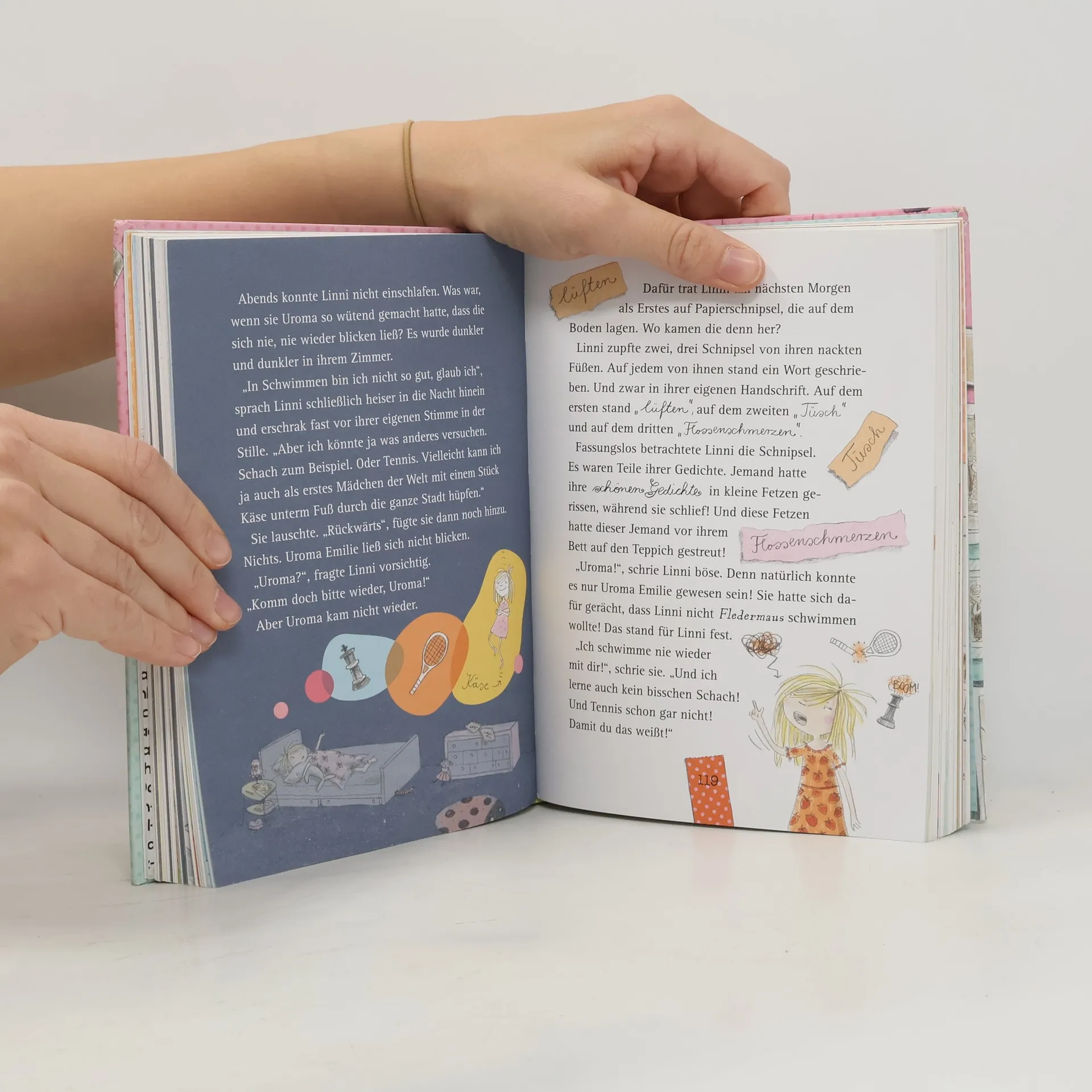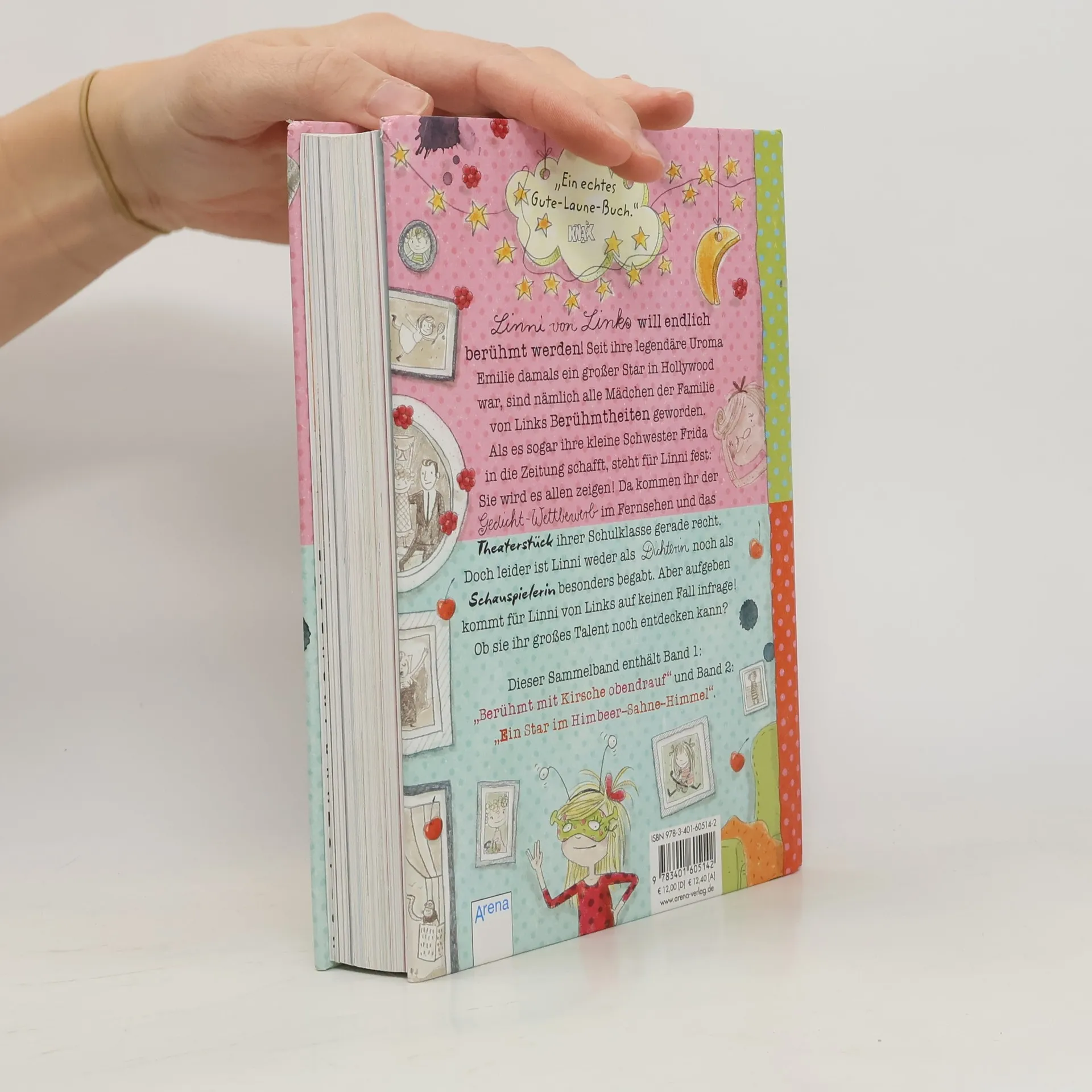 Für alle, die von „Mein Lotta-Leben“ nicht genug bekommen: Hier kommt Linni von Links! Linni von Links reicht es: Seit Uroma Emilie sind alle Frauen der Familie von Links berühmt geworden. Als sogar ihre kleine Schwester zum Star wird, steht für Linni fest: Sie muss etwas tun. Leider ist sie weder als Dichterin noch als Schauspielerin begabt. Doch aufgeben kommt für Linni niemals infrage. Mit ihrer besten Freundin Isadora versucht sie alles, sich ihren Traum vom Berühmtsein zu erfüllen. Dass in letzter Zeit ständig eine griesgrämige alte Dame auftaucht, die aussieht wie ein Geist und Linni und Isadora von einem Missgeschick ins nächste führt, hilft dabei auch nicht. Hochkomisch, liebenswert und originell erzählt von „Mein Lotta-Leben“-Bestsellerautorin Alice Pantermüller. Kunterbunt und einzigartig gestaltet von „Mein Lotta-Leben“-Bestsellerillustratorin Daniela Kohl. Die beliebte Kinderbuchreihe für Mädchen ab 8 Jahren erstmals im attraktiven Sammelband. Weitere Bücher von Alice Pantermüller und Daniela Kohl im Arena Verlag: Mein Lotta-Leben. Alles voller Kaninchen (1) Mein Lotta-Leben. Wie belämmert ist das denn? (2) Mein Lotta-Leben. Hier steckt der Wurm drin! (3) Mein Lotta-Leben. Daher weht der Hase! (4) Mein Lotta-Leben. Ich glaub, meine Kröte pfeift! (5) Mein Lotta-Leben. Den Letzten knutschen die Elche! (6) Mein Lotta-Leben. Und täglich grüßt der Camembär (7) Mein Lotta-Leben. Kein Drama ohne Lama (8) Mein Lotta-Leben. Das reinste Katzentheater (9) Mein Lotta-Leben. Der Schuh des Känguru (10) Mein Lotta-Leben. Volle Kanne Koala (11) Mein Lotta-Leben. Eine Natter macht die Flatter (12) Mein Lotta-Leben. Wenn die Frösche zweimal quaken (13) Mein Lotta-Leben. Da lachen ja die Hunde! (14) Mein Lotta-Leben. Wer den Wal hat (15) Linni von Links. Sammelband. Band 1 und 2 Linni von Links. Alle Pflaumen fliegen hoch (3) Linni von Links. Die Heldin der Bananentorte (4)