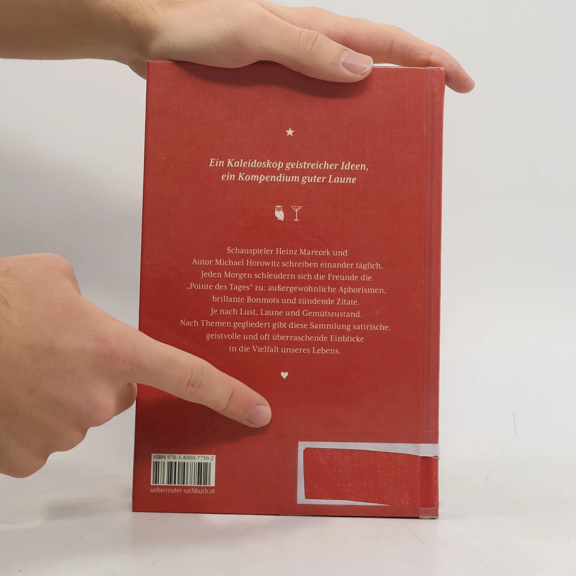 Ein Kaleidoskop geistreicher Ideen, ein Kompendium guter Laune – Schauspieler Heinz Marecek und Autor Michael Horowitz schreiben einander täglich. Jeden Morgen schleudern sich die Freunde die „Pointe des Tages“ zu: außergewöhnliche Aphorismen, brillante Bonmots und zündende Zitate. Je nach Lust, Laune und Gemütszustand. Nach Themen gegliedert gibt diese Sammlung satirische, geistvolle und oft überraschende Einblicke in die Vielfalt unseres Lebens. Das „Feuerwerk der Pointen“ bietet humorvolle Konversation statt Social-Media-Kürzeln.