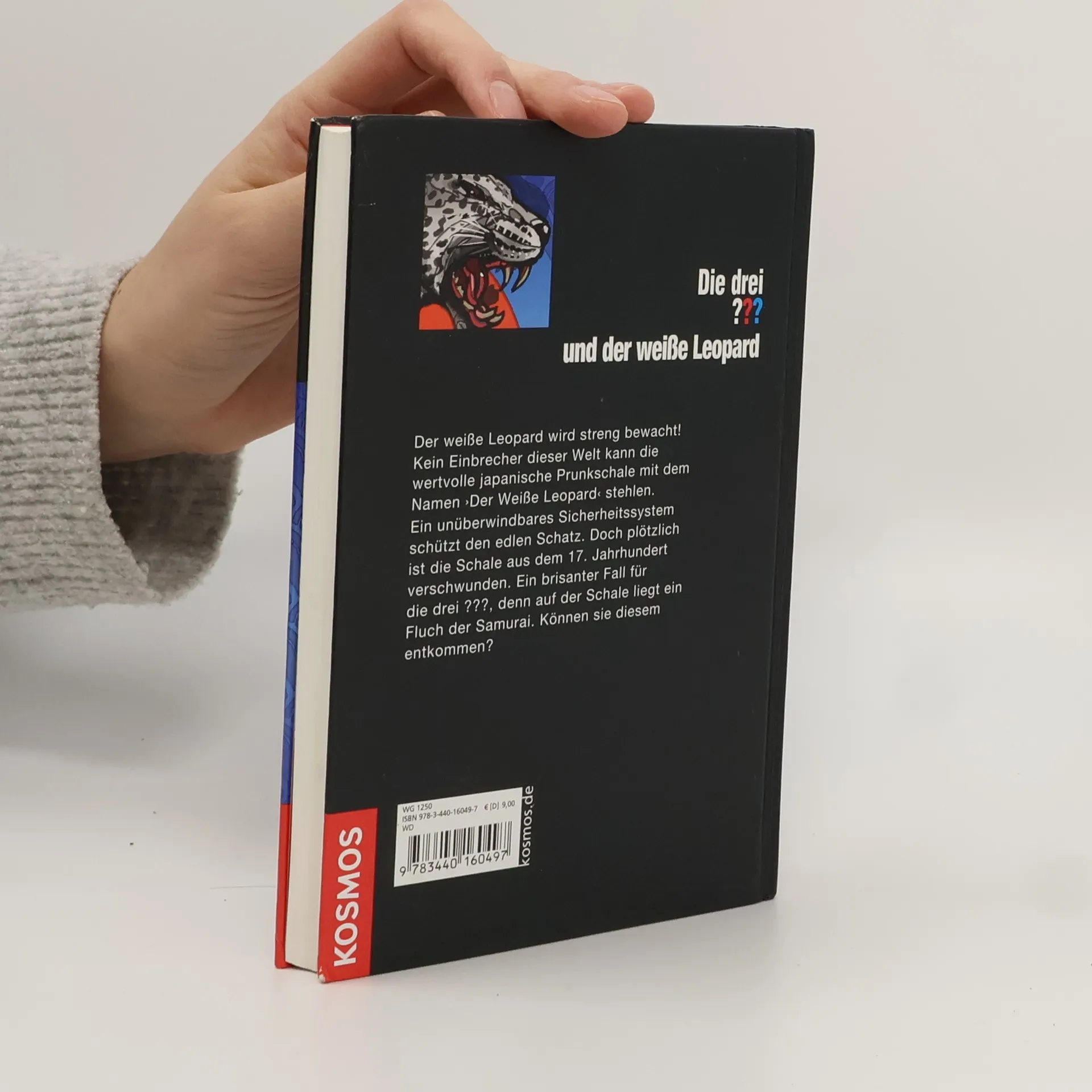 "Der weiße Leopard", eine japanische Prunkschale, verschwindet trotz des hochmodernen Alarmsystems. Ein kniffliger Fall für die drei ???, denn auf der Schale liegt ein Fluch der Samurai.