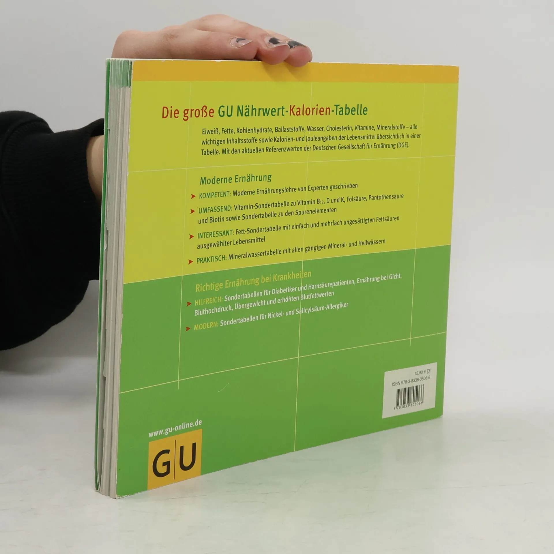 Der Klassiker unter den Nährwerttabellen: Die Nährwert- Kalorien-Tabelle ist seit Jahren der erfolgreichste und bei Ernährungsexperten anerkannte Klassiker. Praktisch und benutzerfreundlich liefert die Tabelle wertvolle Informationen über alle wichtigen Inhaltsstoffe unserer Nahrung und berücksichtigt die aktuellen Referenzwerte der DGE (Deutsche Gesellschaft für Ernährung) zur Nährstoffzufuhr. Das nach Lebensmittelgruppen sortierte Griff-Register und die vielen Sondertabellen, z. B. für Diabetiker oder Allergiker, bieten eine sehr gute Übersicht über zahlreiche Produkte.