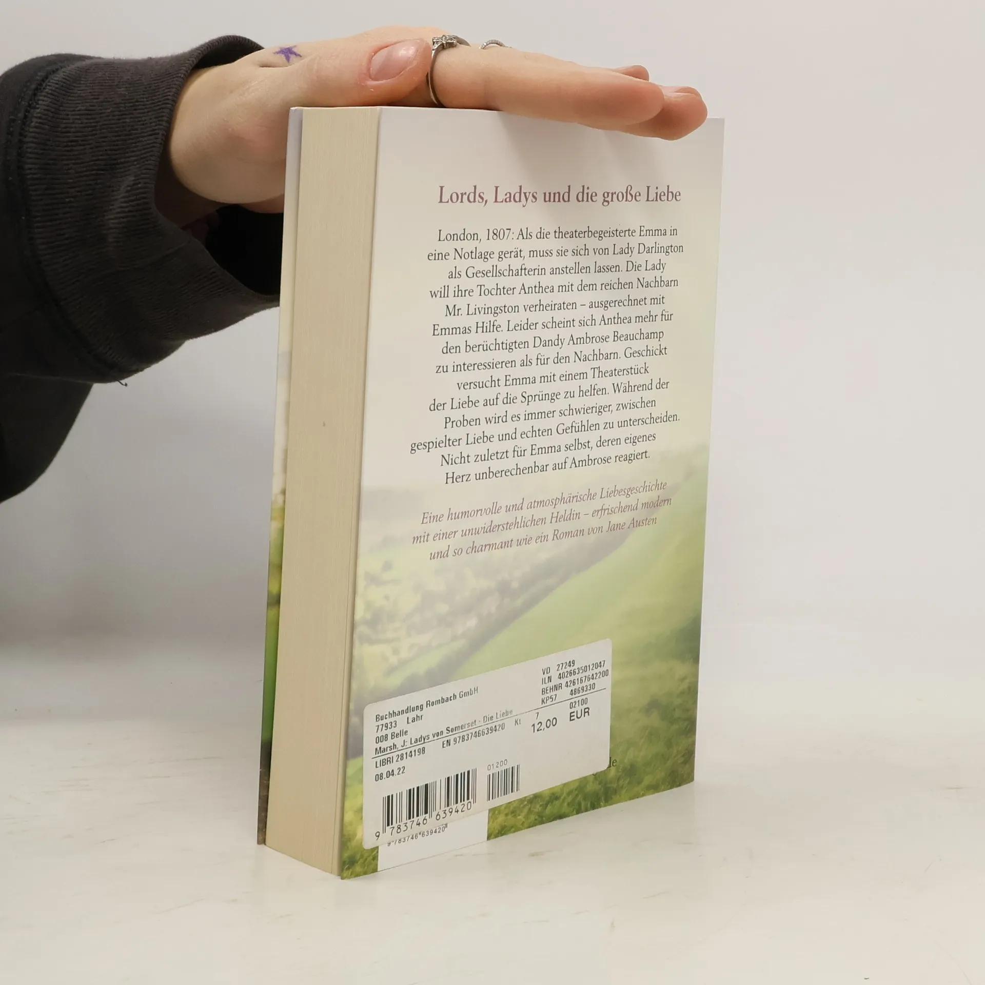 Lords, Ladys und die große Liebe London, 1807: Als die theaterbegeisterte Emma in eine Notlage gerät, muss sie sich von Lady Darlington als Gesellschafterin anstellen lassen. Die Lady will ihre Tochter Anthea mit dem reichen Nachbarn Mr Livingston verheiraten – ausgerechnet mit Emmas Hilfe. Leider scheint sich Anthea mehr für den berüchtigten Dandy Ambrose Beauchamp zu interessieren als für den Nachbarn. Geschickt versucht Emma daher mit einem Theaterstück der Liebe auf die Sprünge zu helfen. Während der Proben wird es immer schwieriger, zwischen gespielter Liebe und echten Gefühlen zu unterscheiden. Nicht zuletzt für Emma selbst, deren eigenes Herz unberechenbar auf den Dandy reagiert. Eine humorvolle und atmosphärische Liebesgeschichte mit einer unwiderstehlichen Heldin – erfrischend modern und so charmant wie ein Roman von Jane Austen