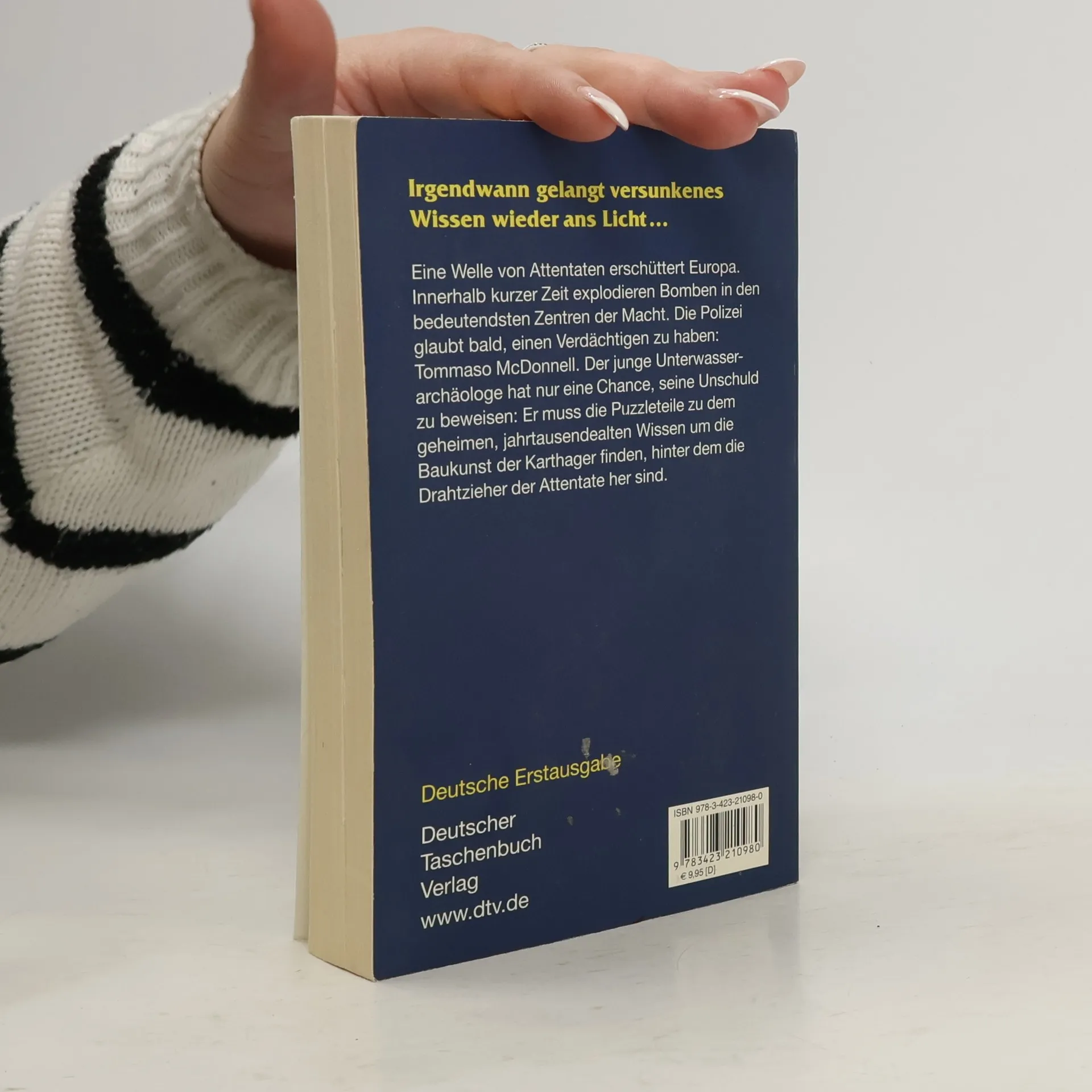 Eine blutige Anschlagserie erschüttert Europa: Innerhalb kürzester Zeit explodieren Bomben in der französischen Nationalversammlung, im Westminister Palace in London und am Sitz der Europäischen Kommission. Zur gleichen Zeit wird Tommaso McDonnell für die Bergung eines geheimnisvollen Schiffswracks vor Tunis engagiert. Als der Unterwasserarchäologe den Auftraggeber in Paris aufsuchen will, trifft er aber nur auf dessen Tochter Claire. Paul Garcieux, Professor für Alte Geschichte an der Universität Sorbonne, ist tot. Gemeinsam versuchen die beiden herauszufinden, was der ermordete Garcieux sich von dem Wrack versprochen hat. In seinen Unterlagen entdecken sie Hinweise auf architektonische Grundprinzipien, nach denen man im alten Karthago gebaut hat. Grundprinzipien, denen man auch beim Bau der zerstörten Regierungsgebäude in Paris, London und Brüssel gefolgt war. Was hatte Garcieux damit zu tun? Dann finden sie Dossiers zu Regierungssitzen auf der ganzen Welt. Bereiten die Attentäter weitere Anschläge vor?