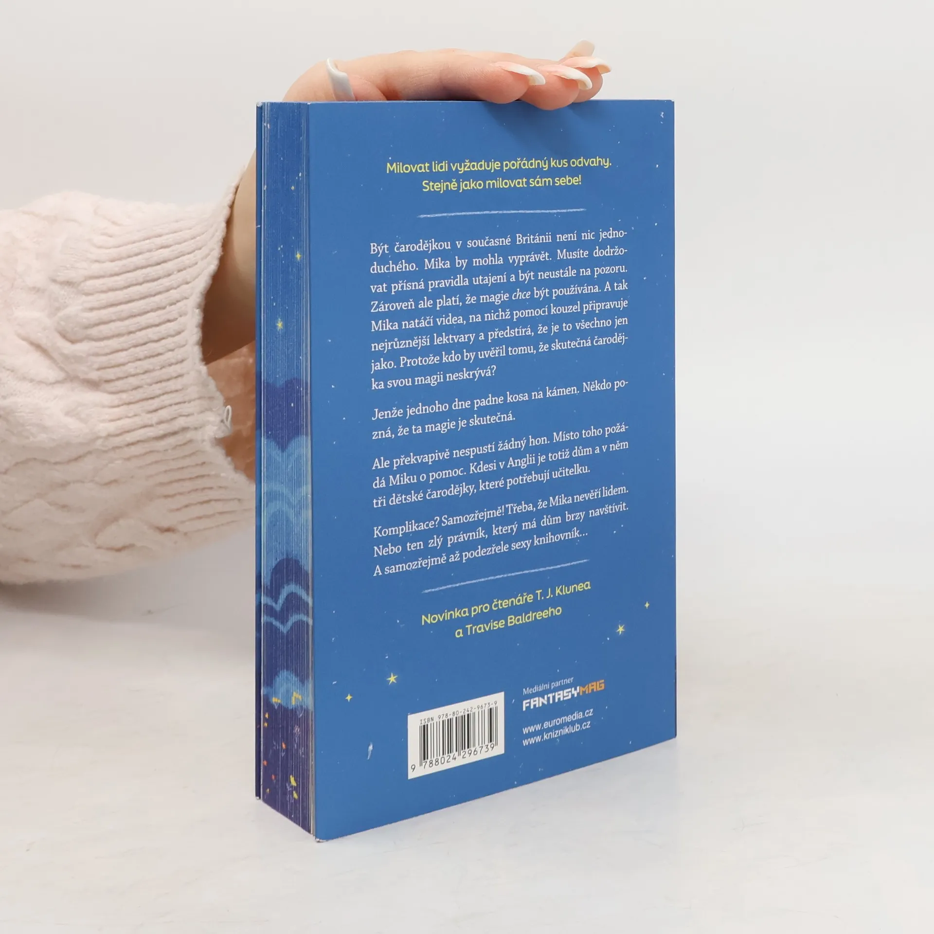 Pravidla čarodějek jsou jasná – v zájmu přežití na sebe neupozorňovat, být co nejopatrnější a moc se nedružit ani s ostatními čarodějkami. Protože kde je čarodějek víc, tam šijí s magií všichni čerti. No jo, jenže co dělat, když vás osazenstvo jistého domu prokoukne? Ne, nechce vás upálit ani utopit ve vašem rybníčku s koi kapry. Je to mnohem horší. V tom domě totiž vyrůstají hned tři malé čarodějky. Bez výcviku. A za pár týdnů má dorazit právník, na jehož rozhodnutí závisí osudy všech v domě. A jasně, rozhodně v čarodějky nevěří, a pokud by v ně uvěřil, chtěl by ty monstra smazat z povrchu zemského. A tak Mika sbalí do svého autíčka všechen svůj majetek – včetně toho rybníčku a koi kaprů (magie, co se divíte?) a vyráží na záchranně-vzdělávací misi. Čelit dětem, právníkům, hněvu nejstarší čarodějky v Anglii i zatraceně pohlednému Irovi. Co by se mohlo pokazit?
