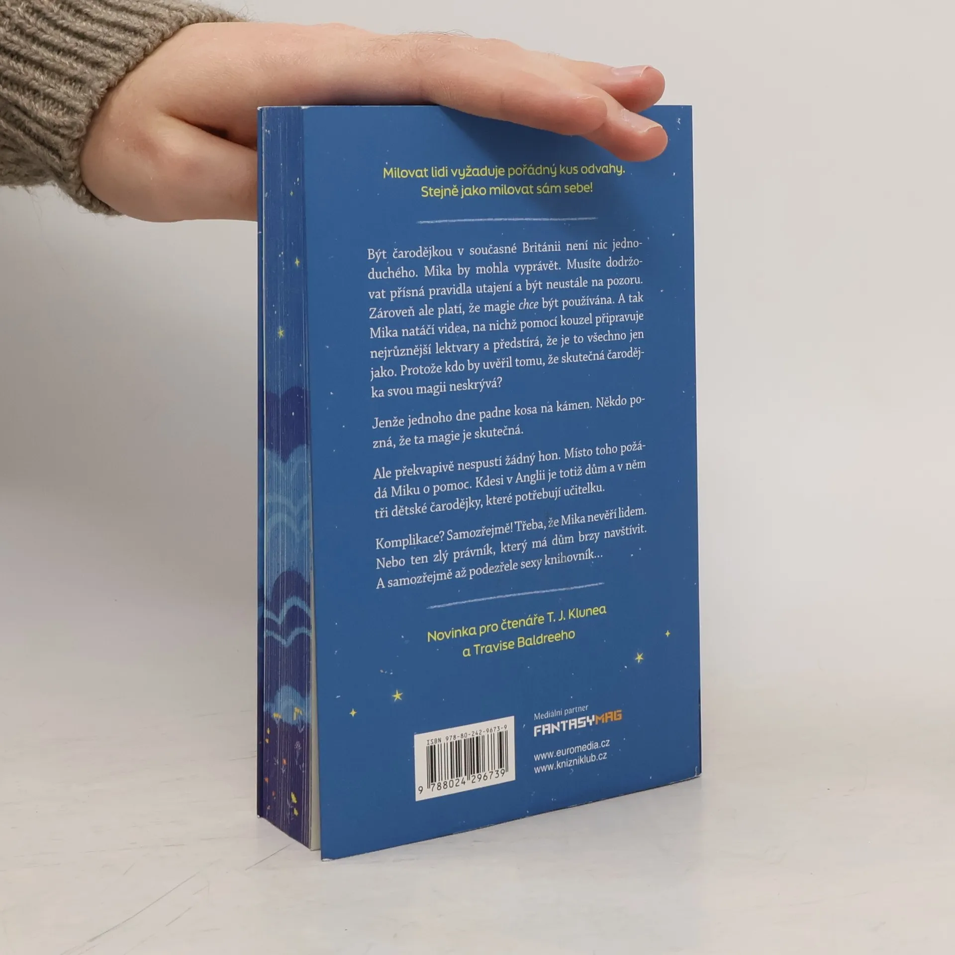 Pravidla čarodějek jsou jasná – v zájmu přežití na sebe neupozorňovat, být co nejopatrnější a moc se nedružit ani s ostatními čarodějkami. Protože kde je čarodějek víc, tam šijí s magií všichni čerti. No jo, jenže co dělat, když vás osazenstvo jistého domu prokoukne? Ne, nechce vás upálit ani utopit ve vašem rybníčku s koi kapry. Je to mnohem horší. V tom domě totiž vyrůstají hned tři malé čarodějky. Bez výcviku. A za pár týdnů má dorazit právník, na jehož rozhodnutí závisí osudy všech v domě. A jasně, rozhodně v čarodějky nevěří, a pokud by v ně uvěřil, chtěl by ty monstra smazat z povrchu zemského. A tak Mika sbalí do svého autíčka všechen svůj majetek – včetně toho rybníčku a koi kaprů (magie, co se divíte?) a vyráží na záchranně-vzdělávací misi. Čelit dětem, právníkům, hněvu nejstarší čarodějky v Anglii i zatraceně pohlednému Irovi. Co by se mohlo pokazit?