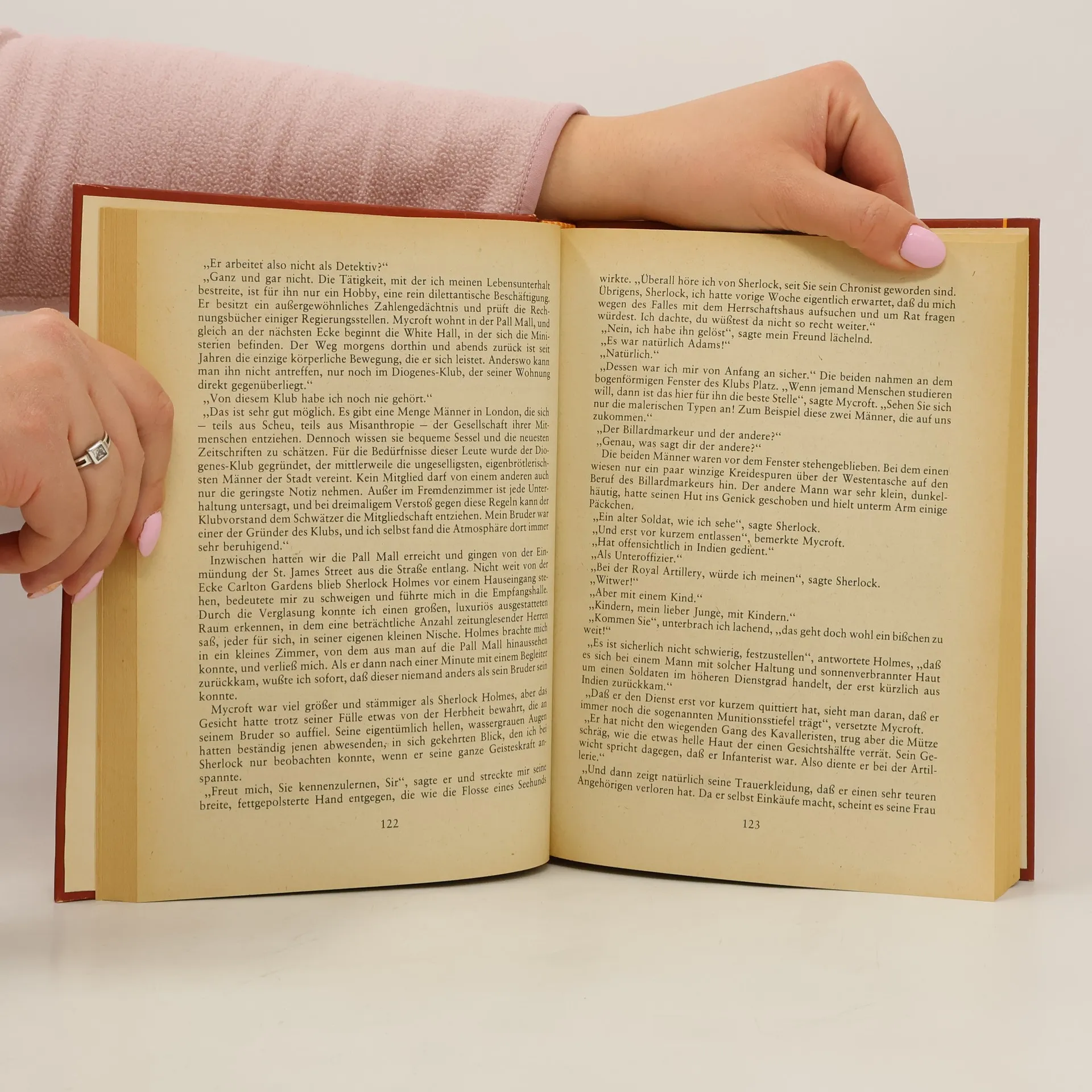 London, Baker Street 221 B, hier wohnt Sherlock Holmes, manchmal auch sein Freund, Dr. Watson.Holmes' Wirtin hat viel zu erdulden. Nicht genug, dass in der ersten Etage ihres Hauses merkwürdige und oft zwielichtige Gestahlten ständig ein und aus gehen, hinzu kommen seine gelegentlichen Schießübungen im Wohnzimmer, die unheimlichen und übelriechenden chemischen Experimente, ein Hauch von Gewalt und Gefahr.Aber natürlich ist sie stolz auf Holmes, denn selbst Scotland Yard bittet ihn um Hilfe: Da müssen Mörder gesucht werden, die im Auftrag einer Geheimorganisation arbeiten und ihren Opfern als Vorboten fünf Apfelsinenkerne schicken, da ist ein Berylldiadem aus dem Kronschatz verschwunden oder ein Rennpferd auf mysteriöse Weise gestohlen worden, da spukt es in der alten Familiengruft, wird ein Kapitän, mit einer Harpune an die Wand gespießt, aufgefunden, eine Schlange als Mörder überführt...Phantasie, Mut und Scharfsinn, diese Eigenschaften helfen Sherlock Holmes, hinter die ausgeklügeltsten Verbrechen zu kommen.Enthält die Geschichten:Das gefleckte BandDie fünf ApfelsinenkerneDas Abenteuer mit dem BerylldiademSilver BlazeDie "Gloria Scott"Der griechische DolmetscherDer letzte FallDas Abenteuer mit dem zweiten BlutfleckDas Geheimnis von Wisteria LodgeDas Abenteuer mit dem Roten KreisDer sterbende DetektivDer Fall Thor-BrückeDas Abenteuer von Shoscombe Old PlaceDer pensionierte Farbenhändler