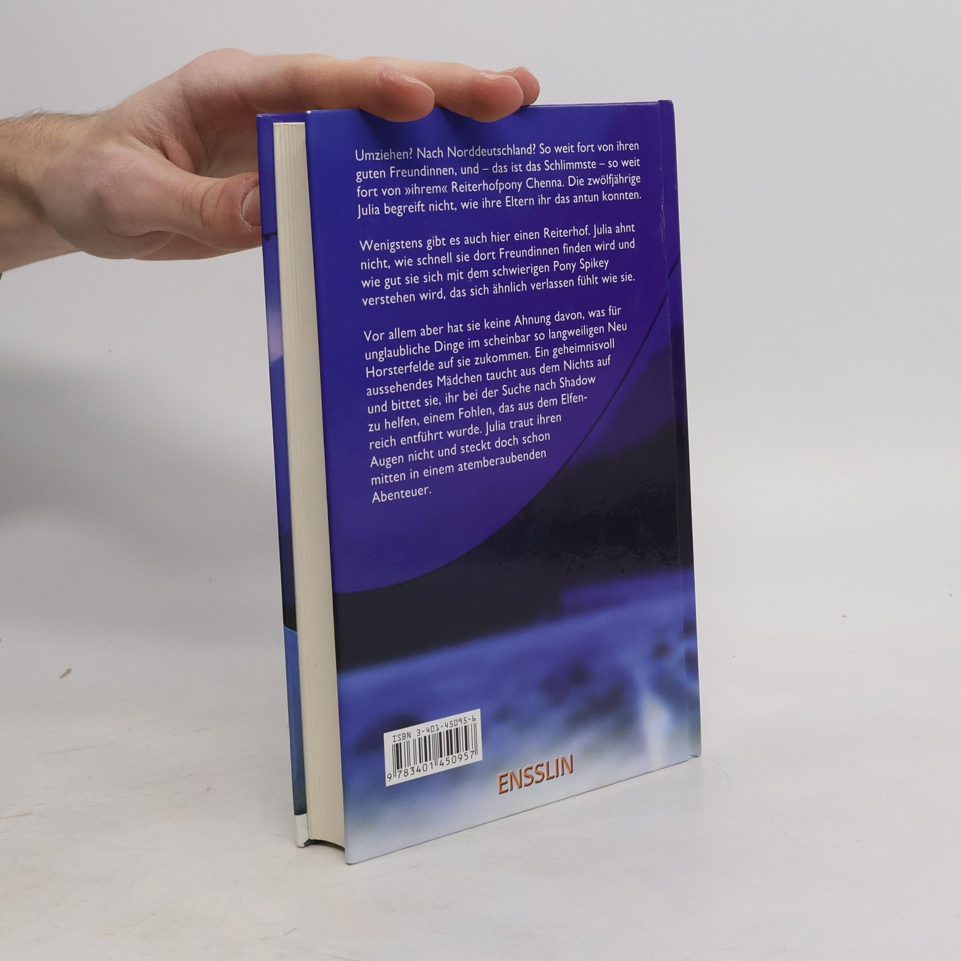 Umziehen? Nach Norddeutschland? So weit fort von ihren guten Freundinnen, und – das ist das Schlimmste – so weit fort von 'ihrem' Reiterhofpony Chenna. Die zwölfjährige Julia begreift nicht, wie ihre Eltern ihr das antun konnten. Wenigstens gibt es auch hier einen Reiterhof.Julia ahnt nicht, wie schnell sie dort Freundinnen finden wird und wie gut sie sich mit dem schwierigen Pony Spikey verstehen wird, das sich ähnlich verlassen fühlt, wie sie. Vor allem aber hat sie keine Ahnung davon, was für unglaubliche Dinge im scheinbar so langweiligen Neu Horsterfelde auf sie zukommen.Ein geheimnisvoll aussehendes Mädchen taucht aus dem Nichts auf und bittet sie, ihr bei der Suche nach Shadow zu helfen, dem Fohlen, das aus dem Elfenreich entführt wurde. Julia traut ihren Augen nicht und steckt doch schon mitten in einem atemberaubenden Abenteuer.