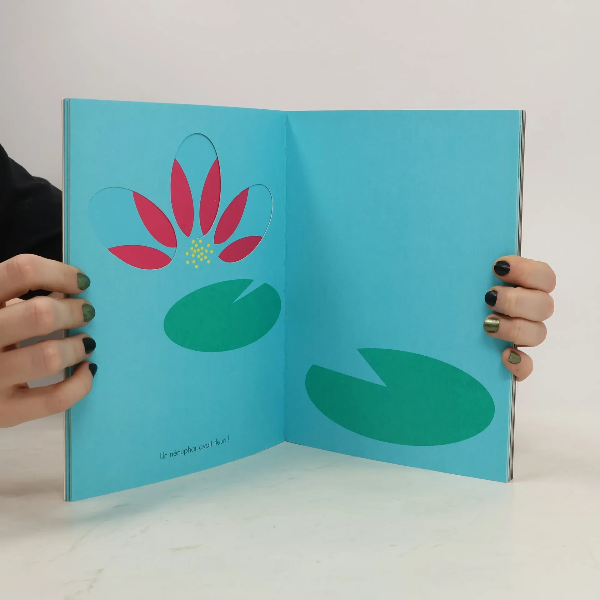 Un livre tout en découpes, aux couleurs vives, où l’histoire se met en place comme par magie. À partir de formes géométriques (ronds, carrés, triangles...), des images-signes apparaissent (de la pluie, des feuilles de nénuphar...), puis un récit (un ciel pluvieux, un étang, une petite grenouille...). Ce livre fait appel à la capacité d’abstraction des enfants, les images se forment, prennent sens sous leurs yeux, à travers des formes simplissimes, créant la surprise à chaque instant. Le livre permet également tout simplement d’aborder l’apprentissage des formes et des couleurs de manière originale.