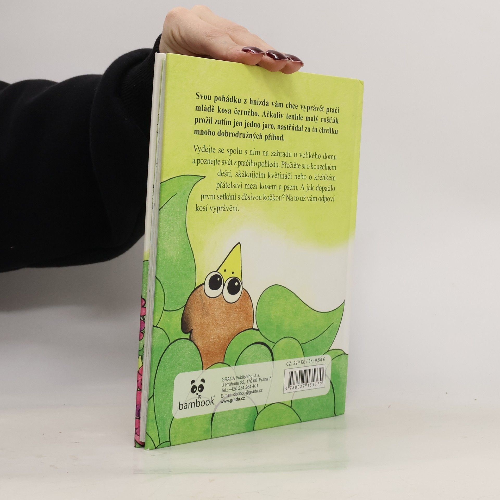 Svou pohádku z hnízda vám chce vyprávět ptačí mládě kosa černého. Ačkoliv tento malý rošťák prožil zatím jen jedno jaro, nastřádal za tu chvilku mnoho dobrodružných příhod. Vydejte se spolu s ním na zahradu u velikého domu a poznejte svět z ptačího pohledu. Přečtěte si o kouzelném dešti, skákajícím květináči nebo o křehkém přátelství mezi kosem a psem. A jak dopadlo první setkání s děsivou kočkou? Na to už vám odpoví kosí vyprávění.