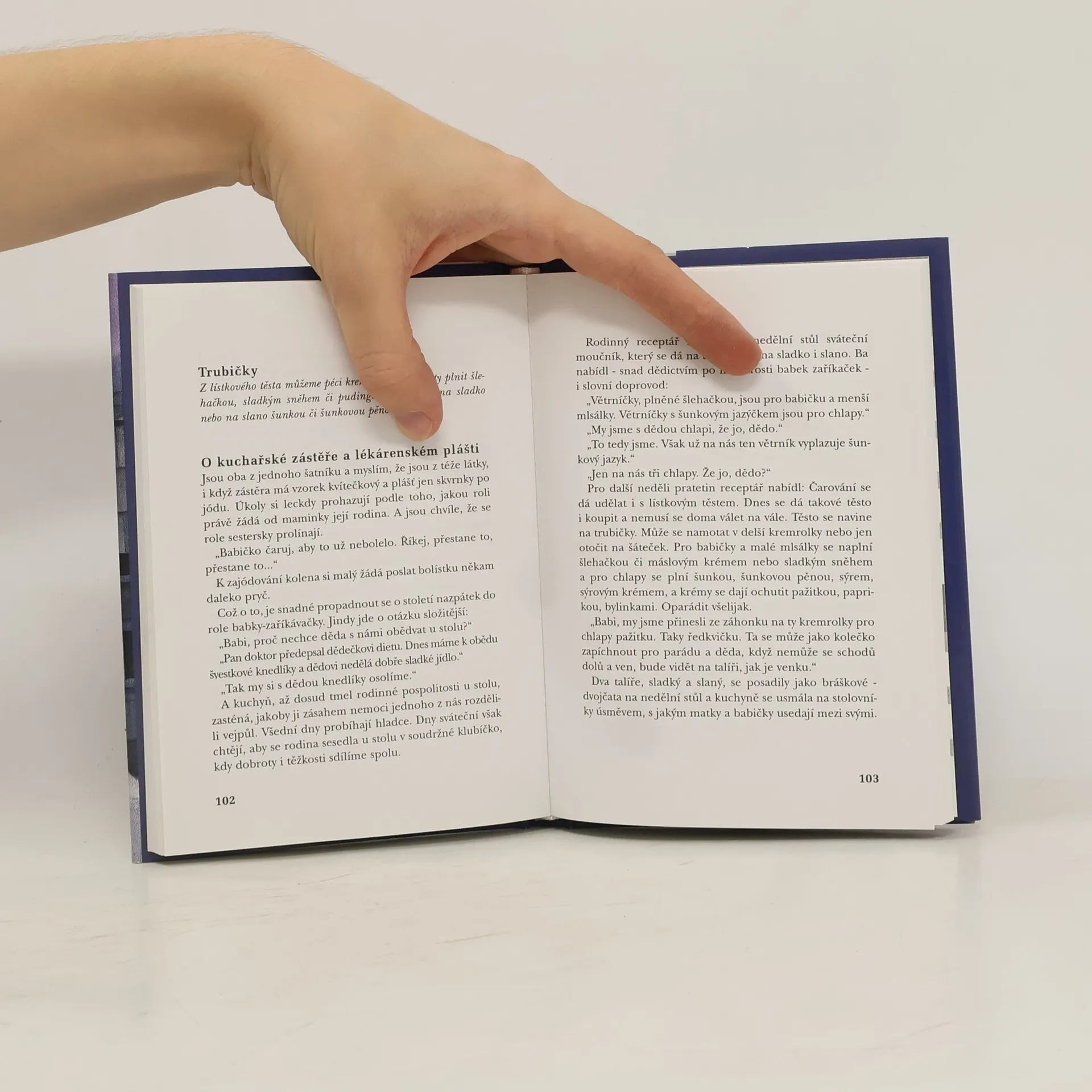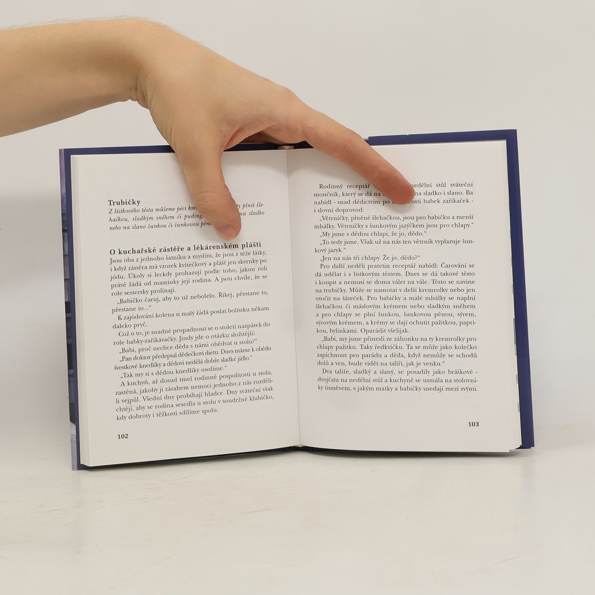 Známá spisovatelka vzpomíná na dobu svého dětství i dospělého života nad zděděnou kuchařskou knihou. Zkušená autorka ví, komu svá hřejivá vyprávění posílá: generaci zralých, starších žen, ale i jejich rodinám a dětem. Příběhy kolem kuchyňského stolu se zrodily ze vzájemné úcty, lásky a drobných lidských radostí. Jsou kořeněny humorem a každý z příběhů otvírá vzácný rodinný recept na skvělé a generacemi kuchařek ověřené recepty. Kuchařské předpisy Marie Kubátová podědila po své tetě, jež byla paní řídící ve valašské obci Pitín. V tomto domácím receptáři je ukrytá moudrost a zkušenost maminek napříč autorčiným rodem po přeslici. Kromě zajímavých návodů na řadu dobrot a střípků ze života M. Kubátové se v knize dozvíme i různé zvyky jak z kraje jejích rodičů, tak i z kraje manžela.... celý text