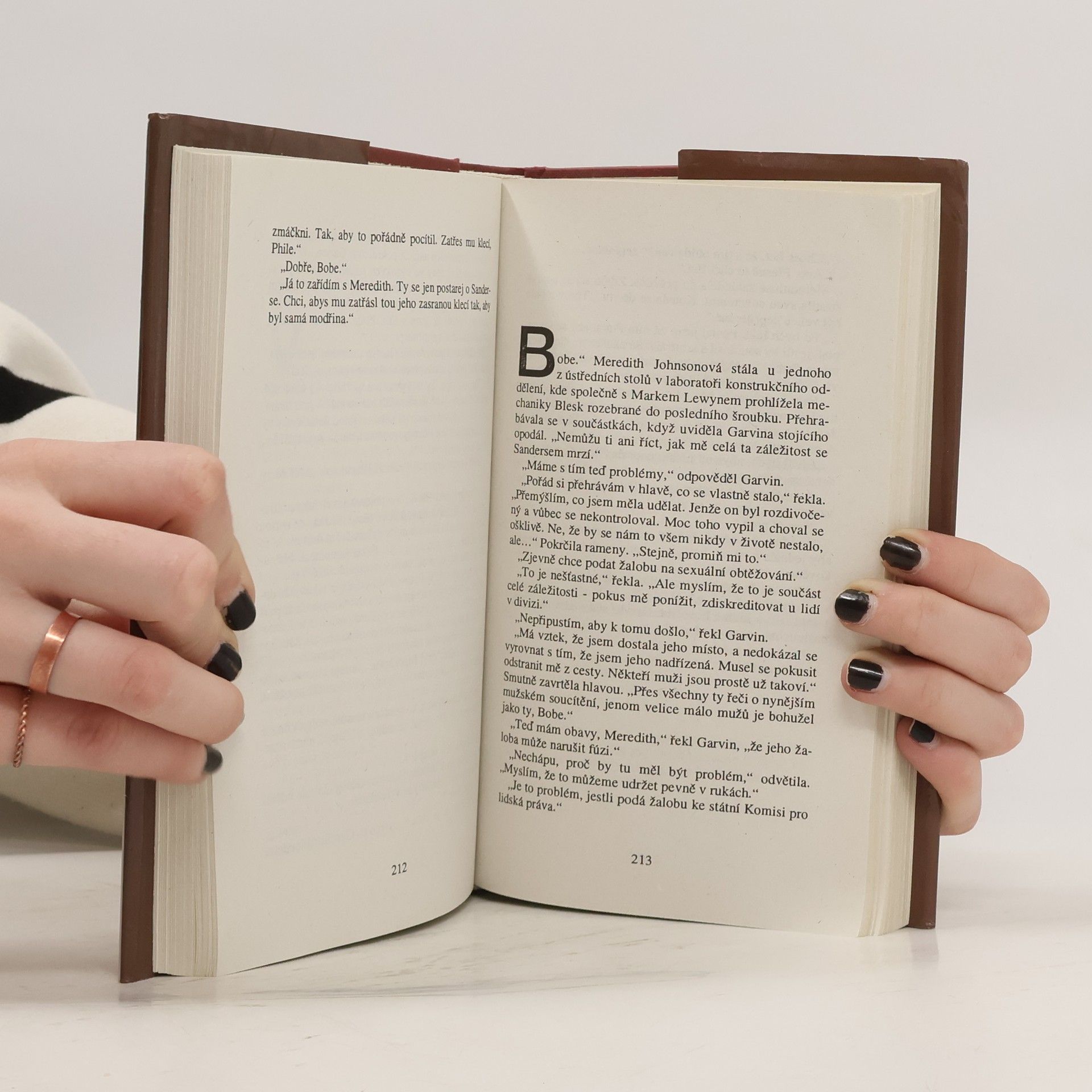 Námětem knihy je sexuální obtěžování uvnitř firmy zabývající se počítačovou technikou, nezvykle je postiženým muž, nikoli žena. Zároveň velice pečlivě pomalu odhaluje taje firmy, vnitřní strukturu a konexe.