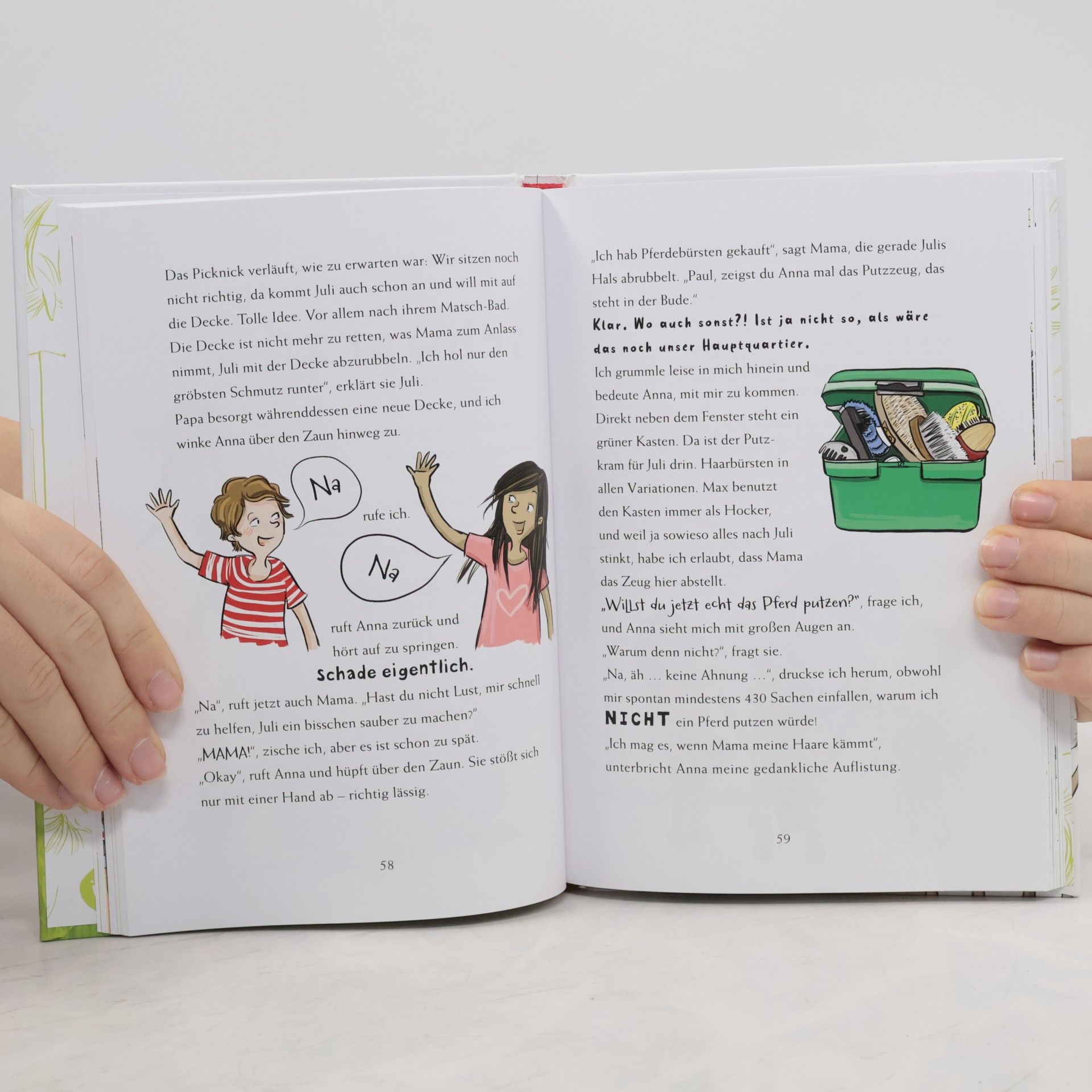 Juli ist uns zugelaufen wie anderen Leuten eine Katze oder ein Hund. Ich habe mir immer einen Hund gewünscht. Nur ist Juli leider kein Hund. Sie ist ein PFERD. 2 Meter hoch, 2 Meter lang und 2 Meter breit. Mindestens! Und sie stand plötzlich einfach in unserem Garten. Meine Eltern fanden sie sofort »supersüß«, und es störte sie kein bisschen, dass sie kein Hund war. Nur mich störte es, denn mit Pferden wollte ich nie etwas zu tun haben. Zu Recht, wie sich herausstellen sollte, denn so ein Pferd macht nur Ärger ...