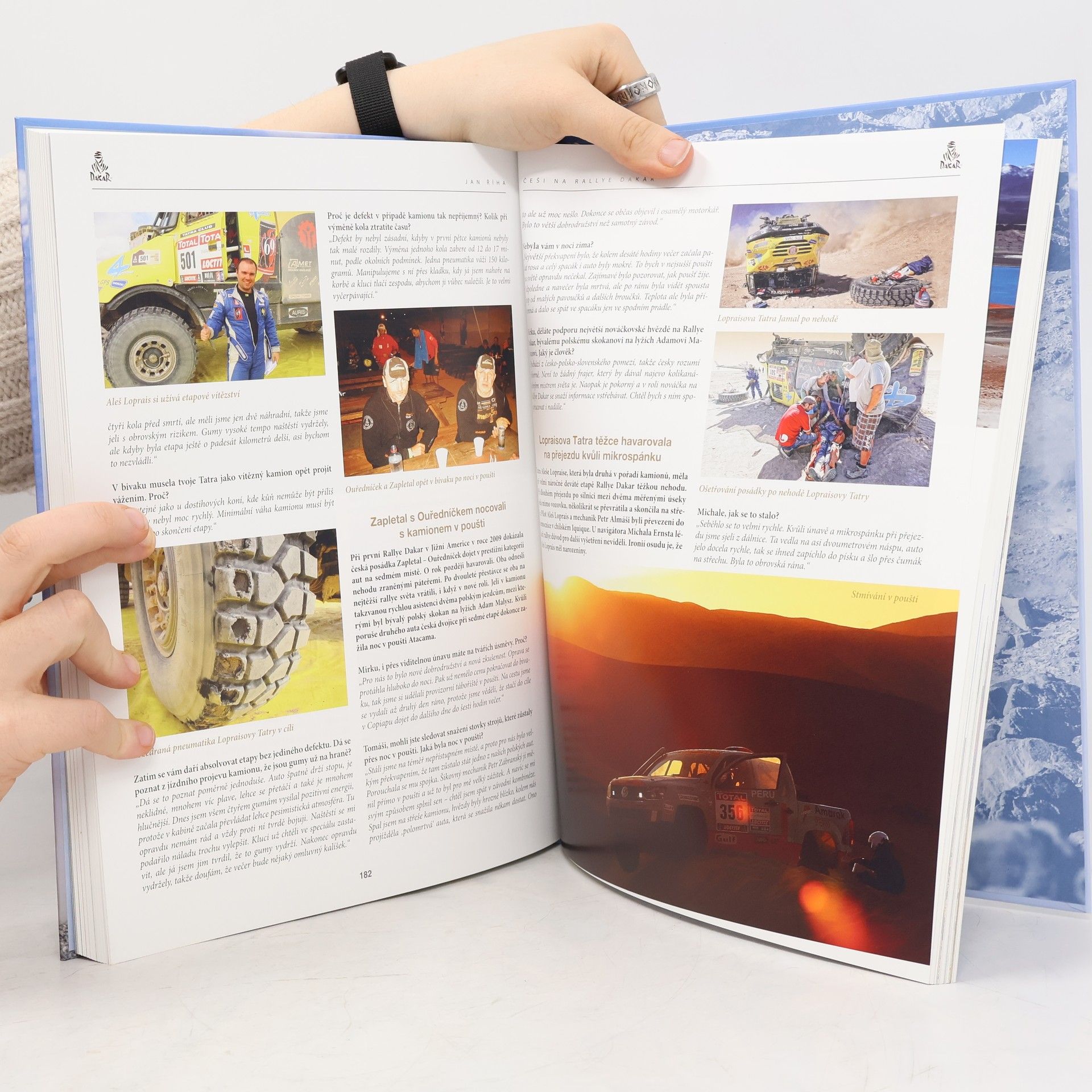 Jedinečná kniha mapující kompletní historii Čechů na Rallye Dakar od úplných začátků až po současnost. V unikátních fotografiích, autentických rozhovorech a reportážích mapuje slavná česká vítězství Karla Lopraise a Josefa Macháčka, momenty, kterými Češi vstoupili do dějin slavné pouštní soutěže, ale i těžké nehody českých závodníků. V knize naleznete také příběhy ze zákulisí Rally Dakar či autentické vzpomínky účastníků tohoto závodu. Neopakovatelné okamžiky, které zažijete nad knihou dlouholetého dakarského reportéra Jana Říhy, jistě umocní jedinečné fotografie předního českého fotografa Petra Luska.