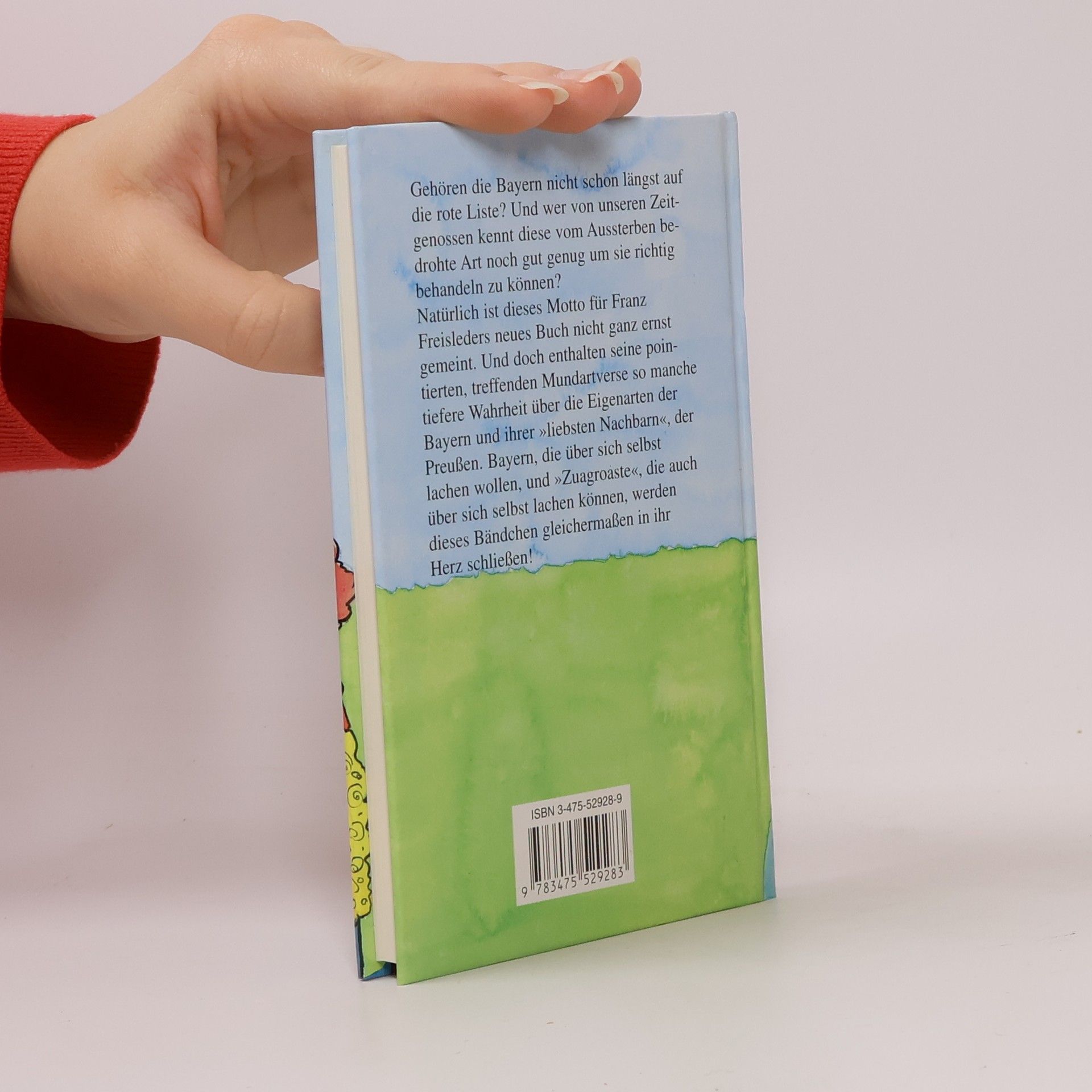 Eine vom Aussterben bedrohte Art stellt sich vor: Unter dieses Motto hat Franz Freisleder sein neues Buch über seine bayerischen Landsleute und ihre Eigenarten gestellt. Mit witzigen Versen zieht er so manche Erscheinung durch den Kakao, die typisch für die weißblauen Lande ist. Aber die Zug’roasten und die Nordlichter sollten sich angesichts so viel bayerischer Selbstironie nicht zu früh freuen: Auch sie kommen dran – und nicht zu wenig! Ein höchst amüsantes Gedichtbändchen, das bei den Bayern wie bei ihren „preißischen Gegenspielern“ gleichermaßen für Heiterkeits-ausbrüche sorgen wird!