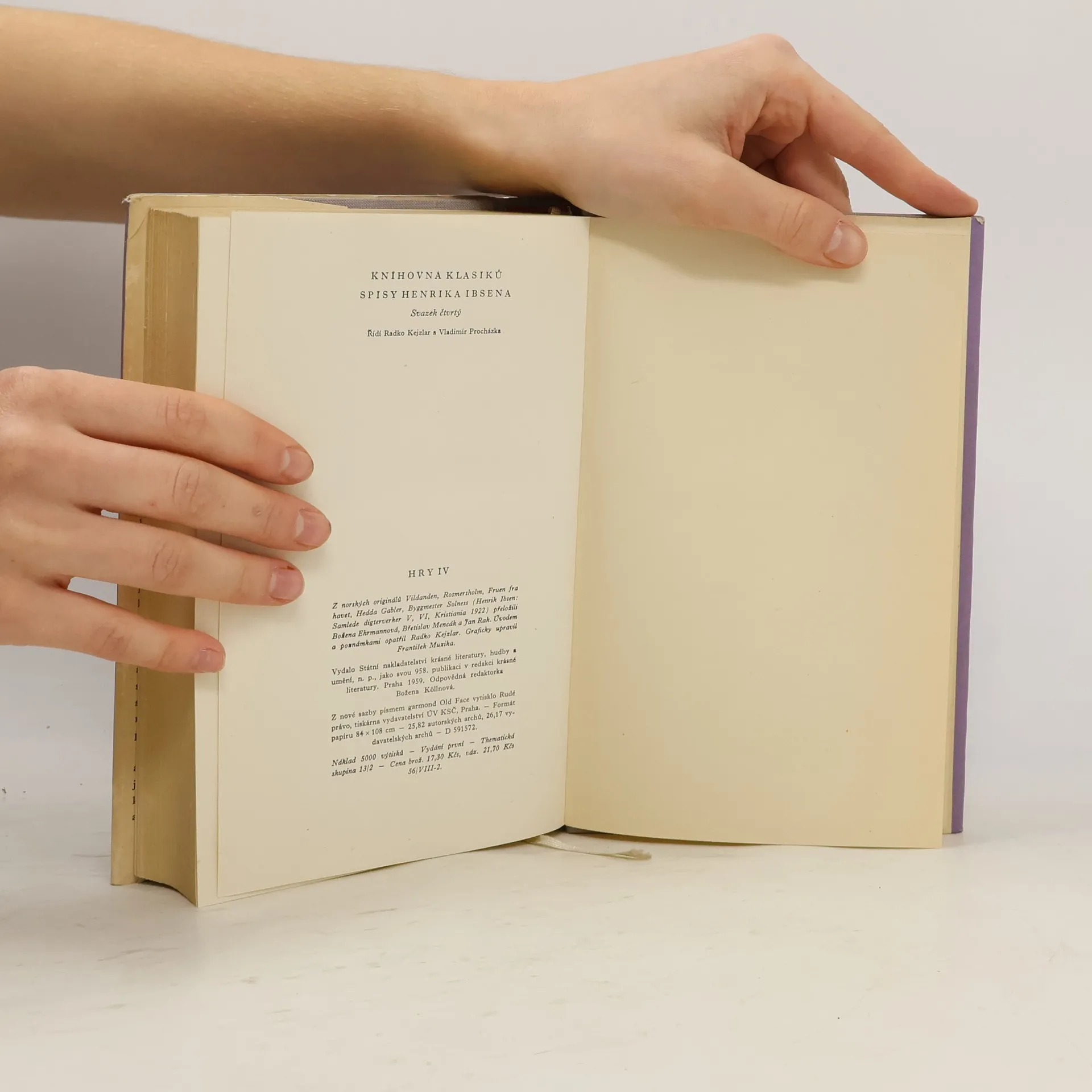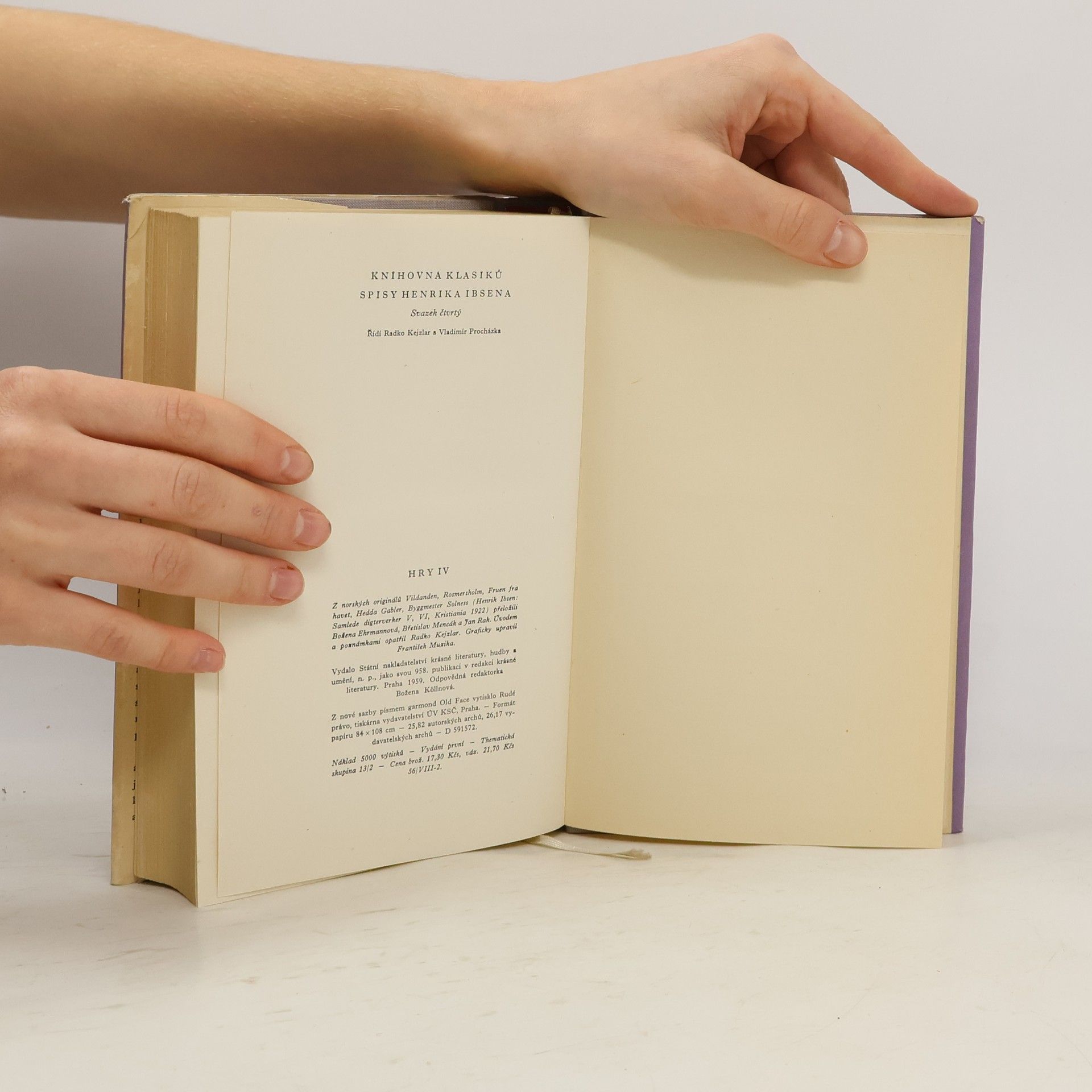 Jedná se o čtvrtý svazek z edice Knihovna klasiků: Spisy Henrika Ibsena. Obsahem jsou hry: Divoká kachna (Vildanden), Rosmersholm (Rosmersholm), Paní z námoří (Fruen fra havet), Hedda Gablerová (Hedda Gabler), Stavitel Solness (Byggmester Solness).