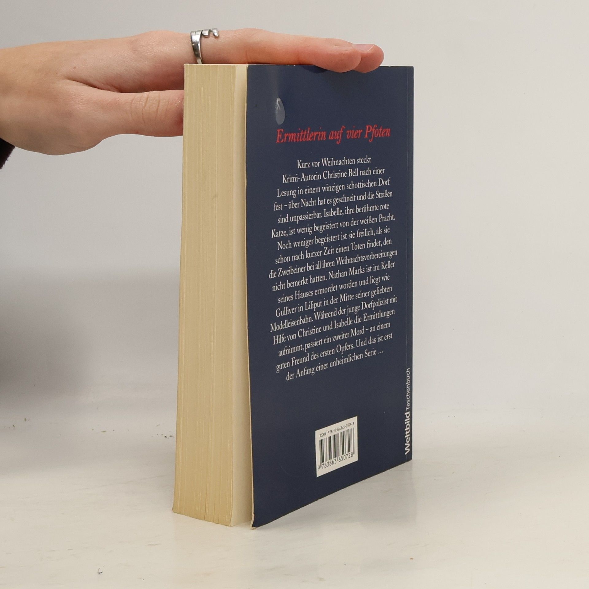 Kurz vor Weihnachten steckt Krimi-Autorin Christine Bell nach einer Lesung in einem winzigen schottischen Dorf fest - über Nacht hat es geschneit und die Straßen sind unpassierbar. Isabelle, ihre berühmte rote Katze, ist wenig begeistert von der weißen Pracht. Noch weniger begeistert ist sie freilich, als sie schon nach kurzer Zeit einen Toten findet, den die Zweibeiner bei all ihren Weihnachtsvorbereitungen nicht bemerkt hatten. Nathan Marks ist im Keller seines Hauses ermordet worden und liegt wie Gulliver in Liliput in der Mitter seiner geliebten Modelleisenbahn. Während der junge Dorfpolizist mit Hilfe von Christine und Isabelle die Ermittlungen aufnimmt, passiert ein zweiter Mord - an einem guten Freund des ersten Opfers. Und das ist erst der Anfang einer unheimlichen Serie...