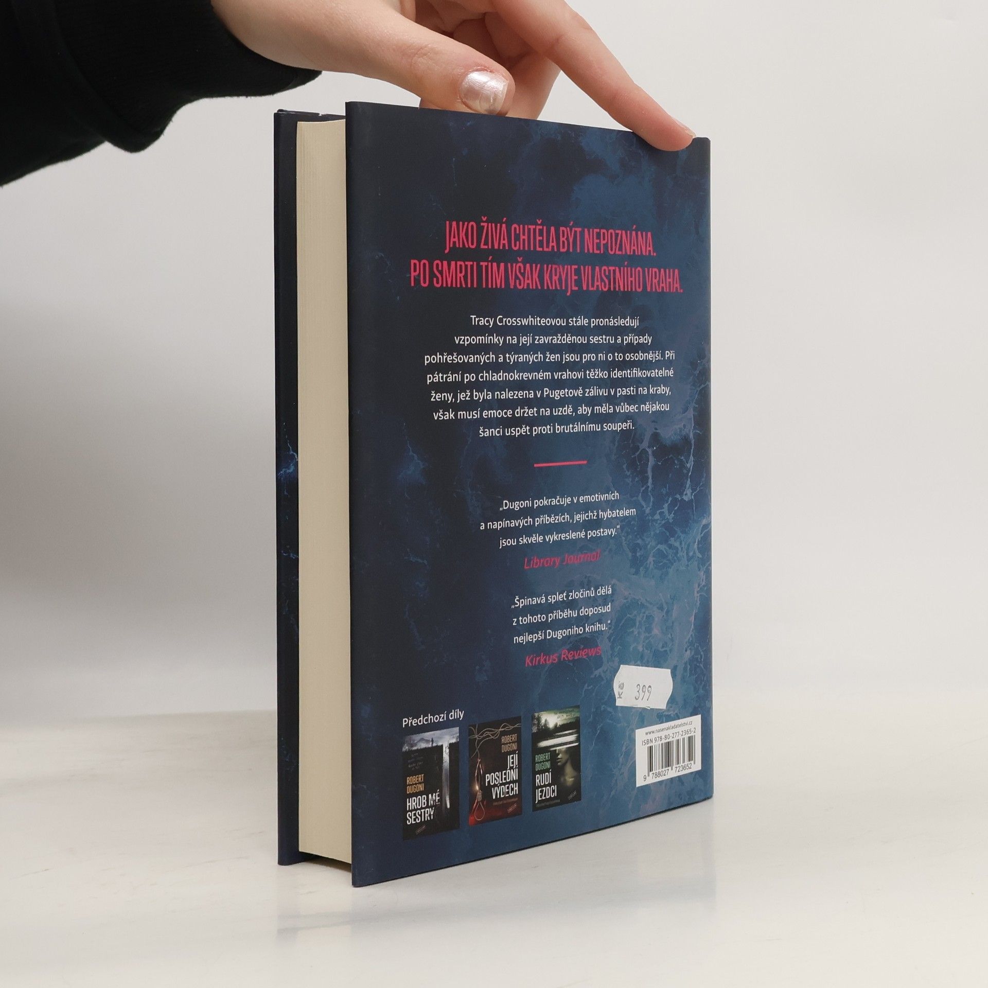 V chladných vodách Pugetova zálivu je nalezeno tělo ženy v pasti na kraby a detektiv Tracy Crosswhiteová se rázem ocitá před těžkým případem, který nebude lehké rozplést. Než se podaří identifikovat vraha, nejprve musí se svými kolegy z oddělení násilných trestných činů seattleské policie zjistit, kdo je vůbec obětí. Pitva však odhalí, že oběť možná vynaložila velké úsilí, aby utajila svou totožnost. Před kým tedy utíkala? Když se objeví důkazy, že jejich neznámá může být žena, která podezřele zmizela před několika měsíci, Tracy opět pronásledují vzpomínky na nevyřešenou vraždu její sestry. Vypátrání detailů z minulosti oběti vede k rozporuplným stopám, které jako by vyšetřování jen dále zamlžovaly. Tracy postupně začíná odhalovat zvrácený příběh brutální zrady a zoufalé chamtivosti a riskuje vše tváří v tvář vrahovi, který se nehodlá vzdát bez boje na život a na smrt.