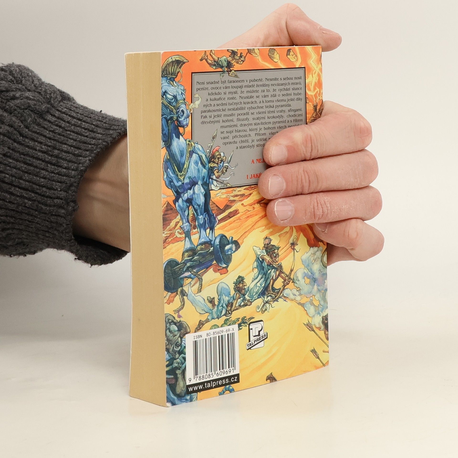 Není snadné být faraónem v pubertě. Nesmíte s sebou nosit peníze, ovoce vám loupají mladé ženštiny nevázaných mravů, kdekdo si myslí, že můžete za to, že vychází slunce a kukuřice roste. Neustále se vám zdá o sedmi hubených a sedmi tučných krávách, a k tomu všemu ještě díky parakosmické nestabilitě vybuchne Velká pyramida. Pak si ještě musíte poradit se všemi těmi vrahy, sfingami, dřevěnými koňmi, filozofy, svatými krokodýly, chodícími mumiemi, dravým stavitelem pyramid a s Hitem se supí hlavou, který je bohem všech neočekávané příchozích. Přitom všechno, co byste opravdu chtěli, je udělat něco pro mladé lidi a starobylý střed města.... celý text