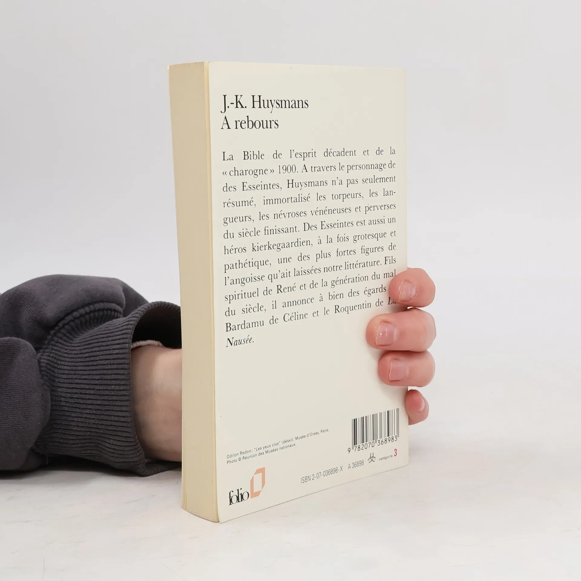 Des Esseintes : Le héros fin de siècle par excellence ! Cynique, misogyne et romantique à l'extrême. Aristocrate oisif, isolé, il se livre à une méditation sur l'existence, l'art, la religion, les femmes... Il fouille l'expérience de l'ennui jusqu'à l'écoeurement. Son acuité intellectuelle de même que le raffinement de ses sens lui font mépriser le vulgaire tout en éprouvant l'inévitable souffrance d'une sensibilité trop aiguisée. Le personnage de Des Esseintes dérange, indubitablement. Comme son auteur, J.-K. Huysmans, esthète dilettant, romancier inclassable, critique d'art redouté et merveilleux pamphlétaire. A rebours (1884) est certainement le roman de la trilogie (A vau-l'eau, 1882 ; En rade, 1887) le plus caractéristique de son style : nerveux, précis, d'une rare sophistication. Sans tomber dans l'écueil d'une préciosité pédante, Huysmans révèle l'esprit décadent, sa nausée, son désespoir mais aussi son sens de la provocation et de l'autodérision. --Claire Mazurel