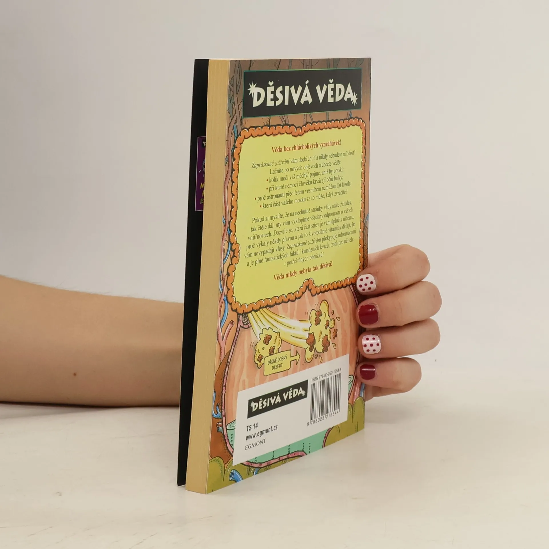 Věda bez chlácholivých vynechávek! Zapráskané zažívání vám dodá chuť a nikdy nebudete mít dost! Lačníte po nových objevech a chcete vědět: - kolik moči váš měchýř pojme, aniž by praskl; - při které nemoci člověku krvácejí oční bulvy; - proč astronauti před letem vesmírem nemůžou jíst fazole; - která část vašeho mozku za to může, když zvracíte? Pokud si myslíte, že na nechutné stránky vědy máte žaludek, tak čtěte dál, my vám vyklopíme všechny odpornosti o vašich vnitřnostech. Dozvíte se, která část střev je vám úplně k ničemu, proč výkaly někdy plavou a jak to životodárné vitaminy dělají, že vám nevypadají vlasy. Zapráskané zažívání překypuje informacemi a je plné fantastických faktů i kuriózních kvizů, testů pro učitele i potřeštěných obrázků! Věda ještě nikdy nebyla tak děsivá!