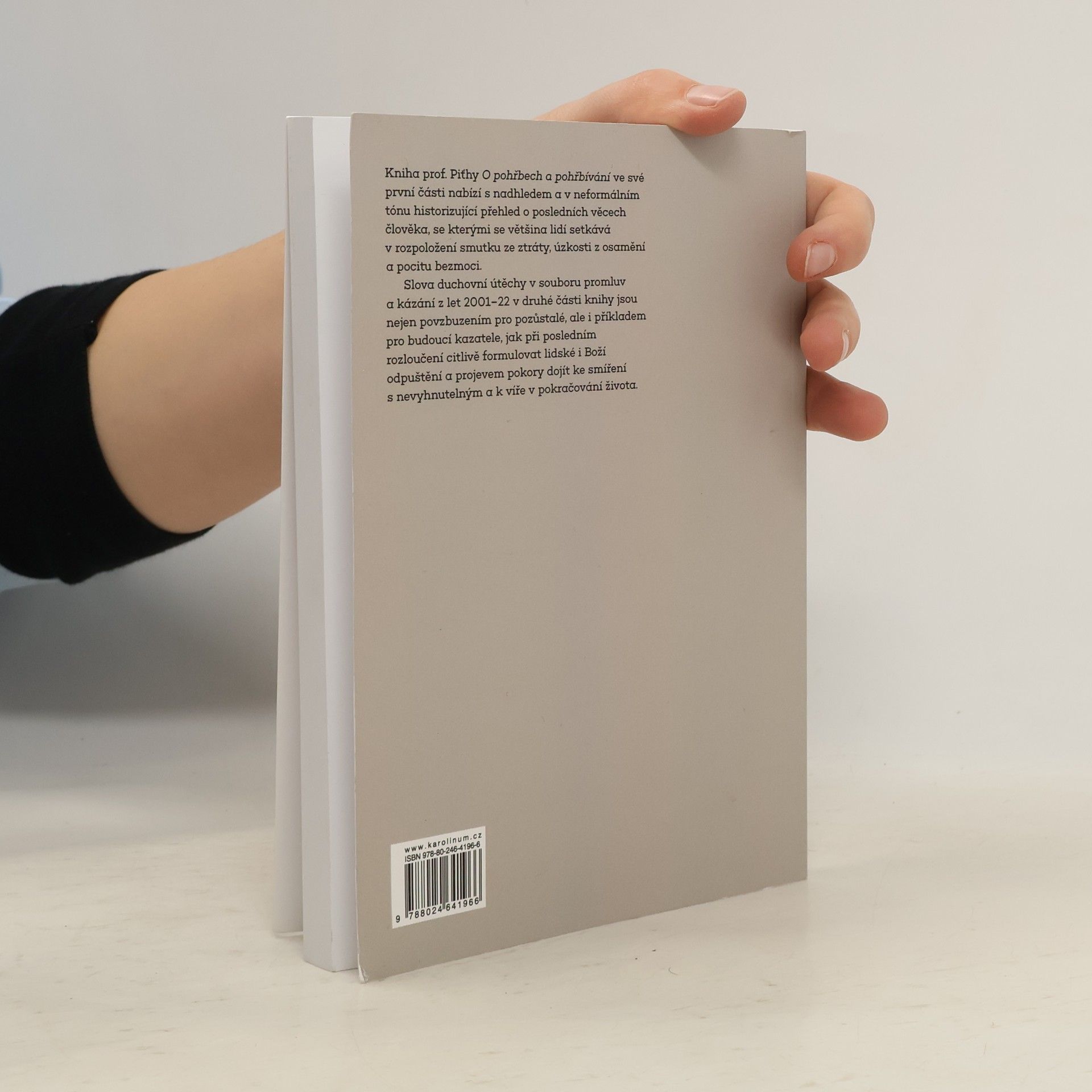 Kniha prof. Piťhy O pohřbech a pohřbívání ve své první části nabízí s nadhledem a v neformálním tónu historizující přehled o posledních věcech člověka, se kterými se většina lidí setkává v rozpoložení smutku ze ztráty, úzkosti z osamění a pocitu bezmoci. Slova duchovní útěchy v souboru promluv a kázání z let 2001–2022 v druhé části knihy jsou nejen povzbuzením pro pozůstalé, ale i příkladem pro budoucí kazatele, jak při posledním rozloučení citlivě formulovat lidské i Boží odpuštění a projevem pokory dojít ke smíření s nevyhnutelným a k víře v pokračování života.