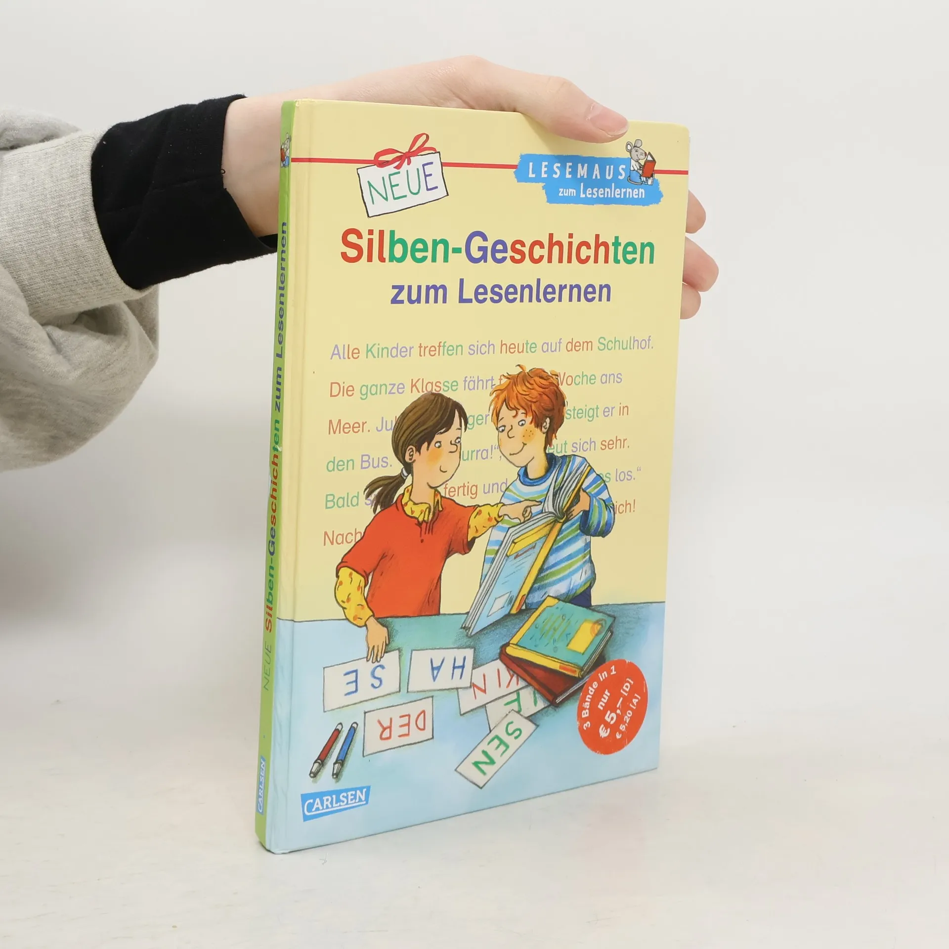 Lesen lernen in kleinen Schritten! Alle Wörter in diesem Band sind in farbigen Silben markiert. Diese kurzen Buchstabengruppen können Leseanfänger schneller erfassen als das ganze Wort. Drei Geschichten erzählen von den Abenteuern der Wikinger, einem kleinen Hund und einer aufregenden Klassenfahrt. Dabei motivieren die kurzen Texte, spannende Sachinfos und knifflige Leserätsel zum Weiterlesen und Mitdenken. Kleine Geschichten für Erstleser ab 6 Lesetexte mit farbiger Silbenmarkierung Einfache Sätze, klare Gliederung Leserätsel zur Erfolgskontrolle Enthält folgende Geschichten: Die Wikinger auf großer Fahrt, Paula und Nele finden einen Hund, Eine Klassenfahrt ans Meer *** LESEMAUS zum LESENLERNEN – die Reihe für Erstleser! *** Spannende und leichte Geschichten für Jungs und Mädchen, lustige Leserätsel und kindgerechte Sachinfos motivieren Leseanfänger zum Weiterlesen und Mitdenken.