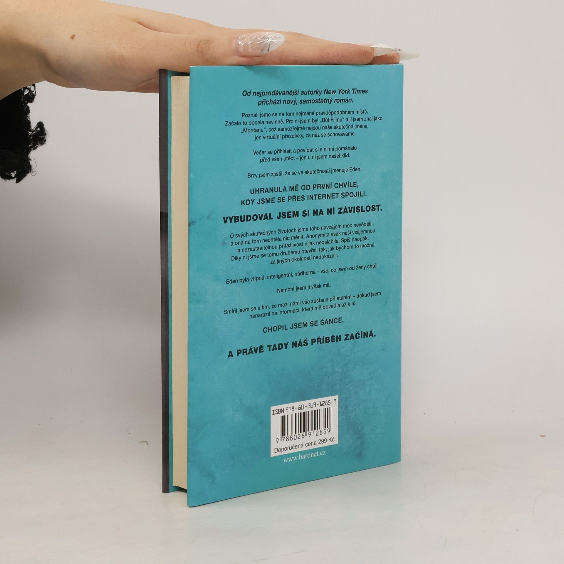 Poznali jsme se na tom nejméně pravděpodobném místě. Začalo to docela nevinně. Pro ni jsem byl „BůhFilmu“ a ji jsem znal jako „Montanu“, což samozřejmě nejsou naše skutečná jména, jen virtuální přezdívky, za něž se schováváme. Večer se přihlásit a povídat si s ní mi pomáhalo před vším utéct – jen u ní jsem našel klid. Brzy jsem zjistil, že se ve skutečnosti jmenuje Eden. Uhranula mě od první chvíle, kdy jsme se přes internet spojili. Vypěstoval jsem si na ní závislost. O svých skutečných životech jsme toho navzájem moc nevěděli… a ona na tom nechtěla nic měnit. Anonymita však naši vzájemnou a nezastavitelnou přitažlivost nijak neoslabila. Spíš naopak. Díky ní jsme se tomu druhému otevřeli tak, jak bychom to možná za jiných okolností nedokázali. Eden byla vtipná, inteligentní, nádherná – vše, co jsem od ženy chtěl. Nemohl jsem ji však mít. Smířil jsem se s tím, že mezi námi zůstane vše při starém – dokud jsem nenarazil na informaci, která mě dovedla až k ní. Chopil jsem se šance. A právě tady náš příběh začíná.
