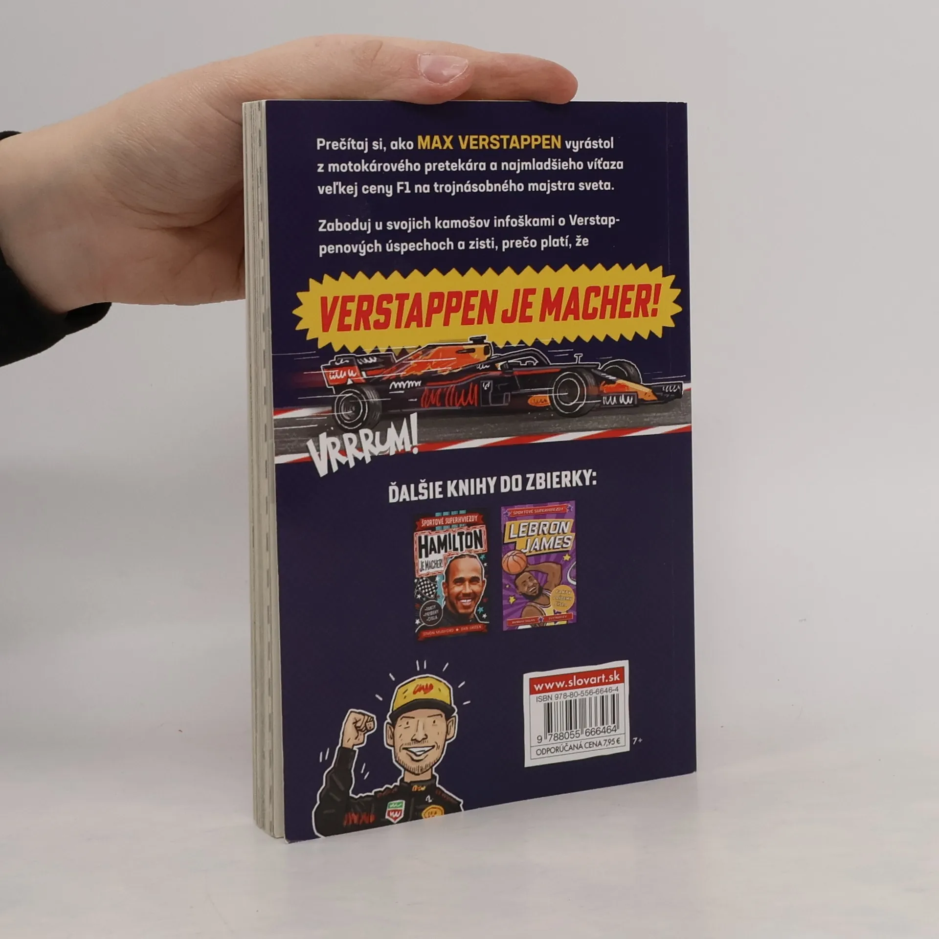 Prečítaj si, ako sa 17-ročný Max Verstappen stal najmladším jazdcom Formuly 1, v 24 rokoch vyhral prvé majstrovstvá sveta a v roku 2023 získal najviac pódiových umiestnení v jednej sezóne. Zaboduj u svojich kamošov infoškami o Verstappenových úspechoch a zisti, prečo platí, že VERSTAPPEN JE MACHER! Zábavný komiks pre športových fanúšikov od 7 rokov.