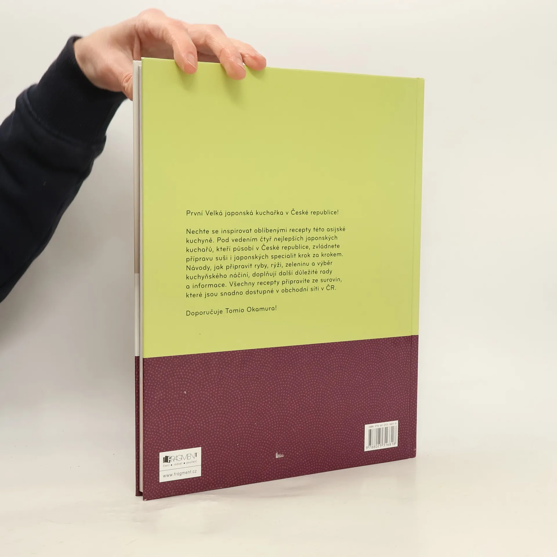 Velká japonská kuchařka přináší originální recepty od předních japonských kuchařů. Seznámí nás s nejoblíbenějšími recepty této asijské kuchyně a naučí nás jejich přípravu krok za krokem. Kromě oblíbených sushi receptů přináší i řadu dalších specialit. Dozvíme se také, jak připravovat ryby, rýži, zeleninu - jaké používat kuchyňské náčiní a mnoho dalších důležitých rad a informací. K přípravě jídel jsou použity ingredience dostupné v naší obchodní síti, případně ve speciálních prodejnách s japonskými potravinami. Kuchařkou provází 4 nejvýznamnější japonští kuchaři působící v České republice. Knihu doporučuje Tomio Okamura.