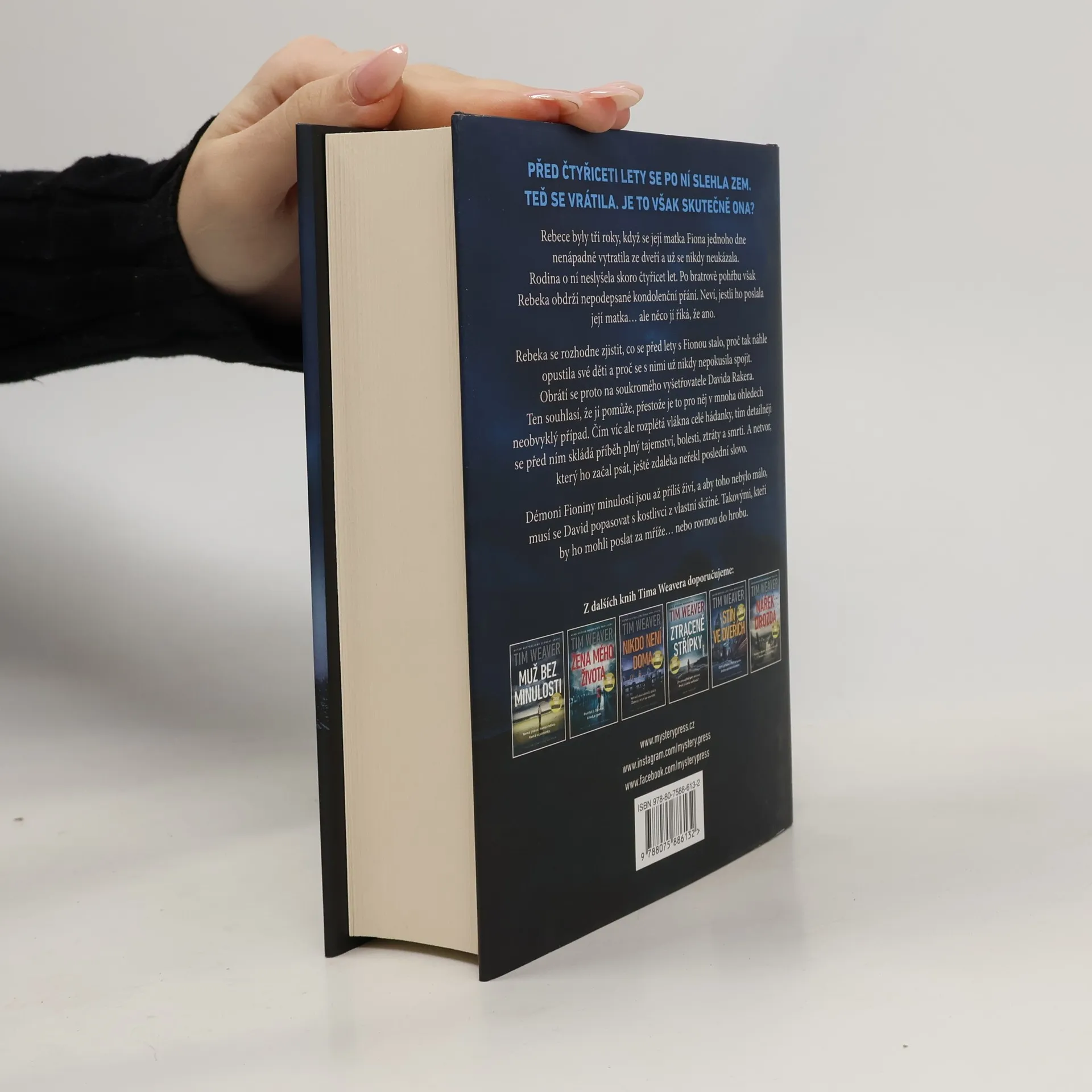 PŘED ČTYŘICETI LETY SE PO NÍ SLEHLA ZEM. TEĎ SE VRÁTILA. JE TO VŠAK SKUTEČNĚ ONA? Rebece byly tři roky, když se její matka Fiona jednoho dne nenápadně vytratila ze dveří a už se nikdy neukázala. Rodina o ní neslyšela skoro čtyřicet let. Po bratrově pohřbu však Rebeka obdrží nepodepsané kondolenční přání. Neví, jestli ho poslala její matka… ale něco jí říká, že ano. Rebeka se rozhodne zjistit, co se před lety s Fionou stalo, proč tak náhle opustila své děti a proč se s nimi už nikdy nepokusila spojit. Obrátí se proto na soukromého vyšetřovatele Davida Rakera. Ten souhlasí, že jí pomůže, přestože je to pro něj v mnoha ohledech neobvyklý případ. Čím víc ale rozplétá vlákna celé hádanky, tím detailněji se před ním skládá příběh plný tajemství, bolesti, ztráty a smrti. A netvor, který ho začal psát, ještě zdaleka neřekl poslední slovo. Démoni Fioniny minulosti jsou až příliš živí, a aby toho nebylo málo, musí se David popasovat s kostlivci z vlastní skříně. Takovými, kteří by ho mohli poslat za mříže… nebo rovnou do hrobu.