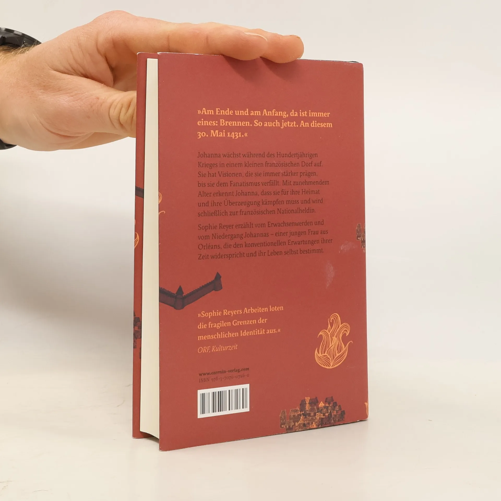 »Am Ende und am Anfang, da ist immer eines: Brennen. So auch jetzt. An diesem 30. Mai 1431.« Johanna wächst während des Hundertjährigen Krieges in einem kleinen französischen Dorf auf. Sie hat Visionen, die sie immer stärker prägen, bis sie dem Fanatismus verfällt. Mit zunehmendem Alter erkennt Johanna, dass sie für ihre Heimat und ihre Überzeugung kämpfen muss, und wird schließlich zur französischen Nationalheldin. Eine alte Prophezeiung besagt, dass eine Jungfrau die Welt retten würde. Und Johanna, ein von Visonen getriebenes Mädchen aus der französischen Provinz, weiß, dass sie diese Prophezeiung erfüllen wird. Doch sie gerät in einen Strudel aus Hinterlist und Verrat, dem sie nicht entkommen kann. Kurz vor ihrer Hinrichtung trifft sie im Verlies auf Nicolas Loyseleur, ihren vermeintlichen Beichtvater. Dieser soll ihr ein Geständnis entlocken, wird aber selbst immer tiefer in ihren Bann gezogen. Sophie Reyer erzählt meisterlich vom Erwachsenwerden und vom Niedergang Johannas – einer jungen Frau aus Orléans, die den konventionellen Erwartungen ihrer Zeit widerspricht und ihr Leben selbst bestimmt.