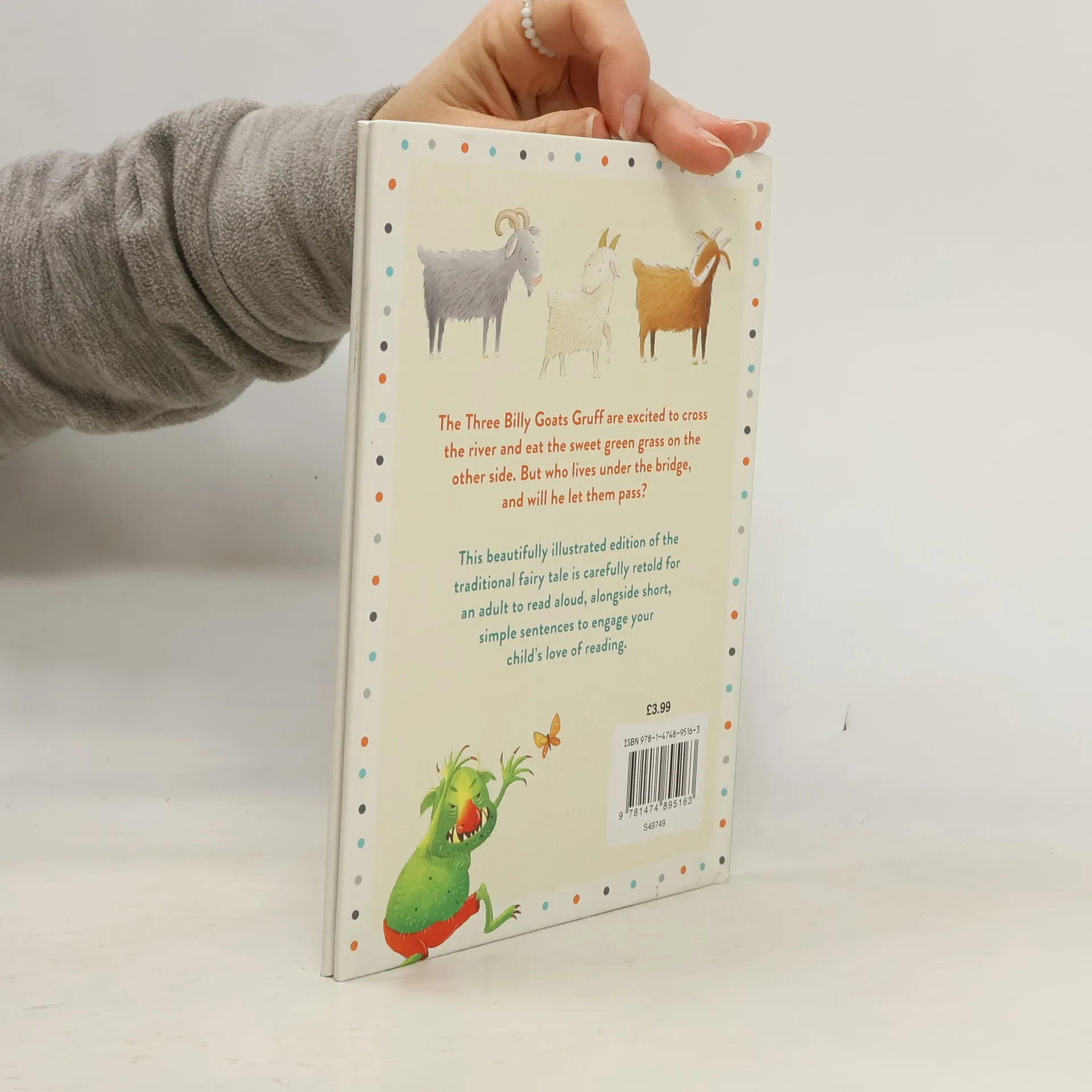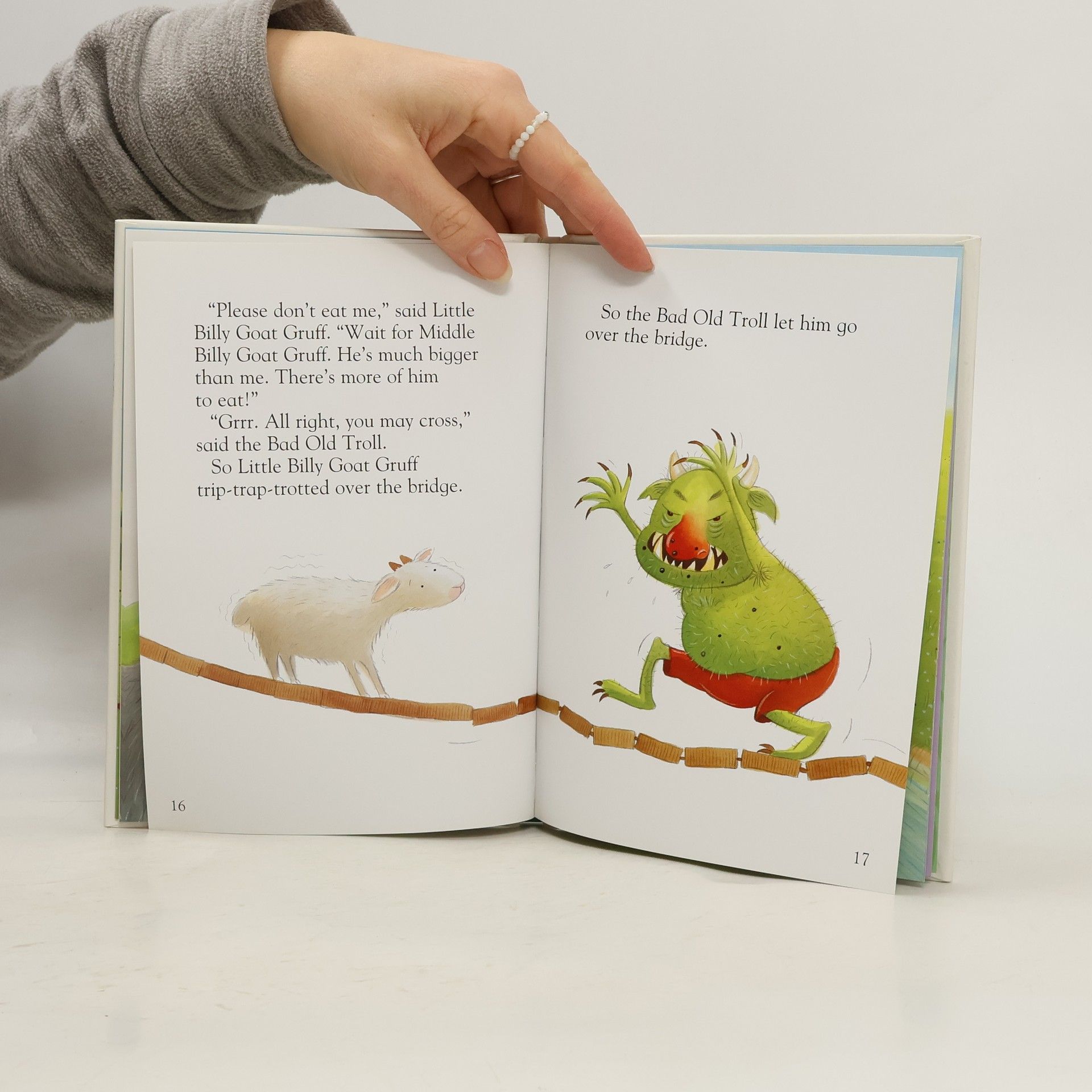 The Three Billy Goats Gruff are excited to cross the river and eat the sweet green grass on the other side. But who lives under the bridge, and will he let them pass?